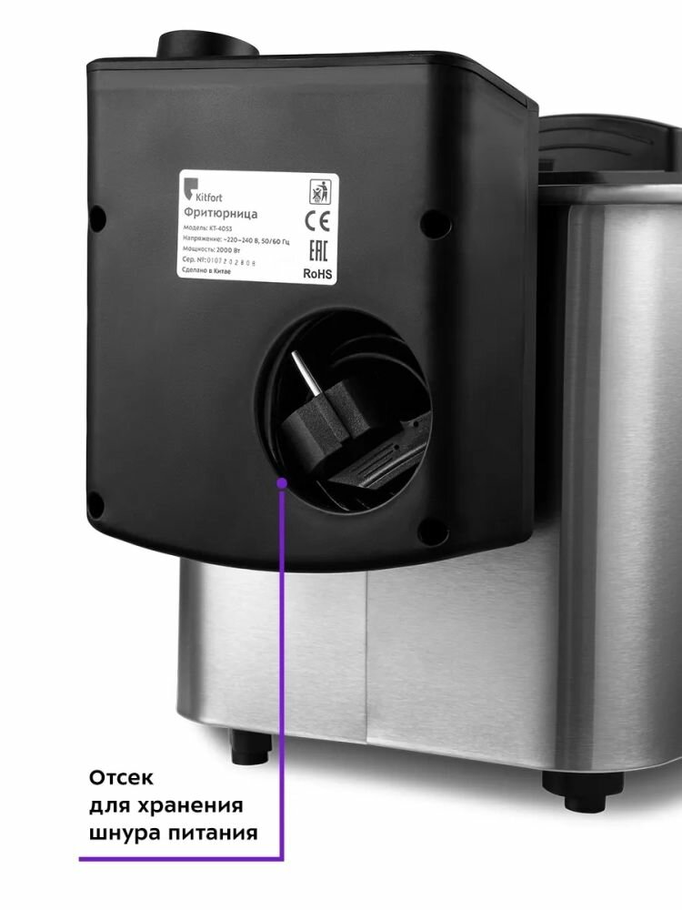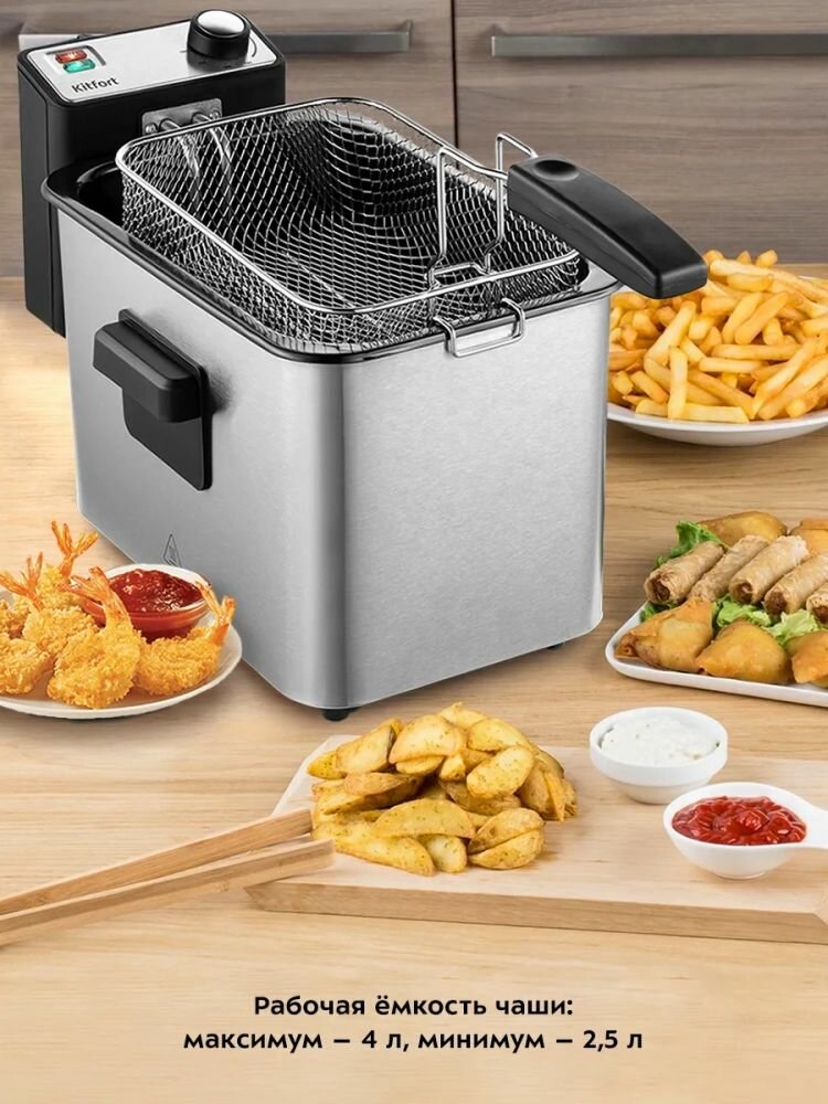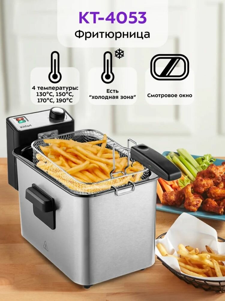 Фритюрница Kitfort КТ-4053, электрическая, 2000Вт, нержавеющая сталь, серебристая интересное: