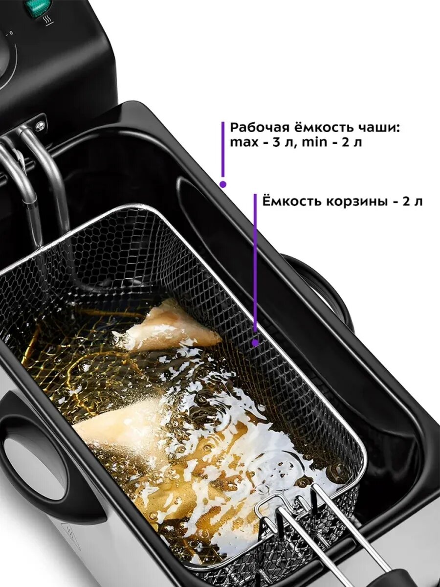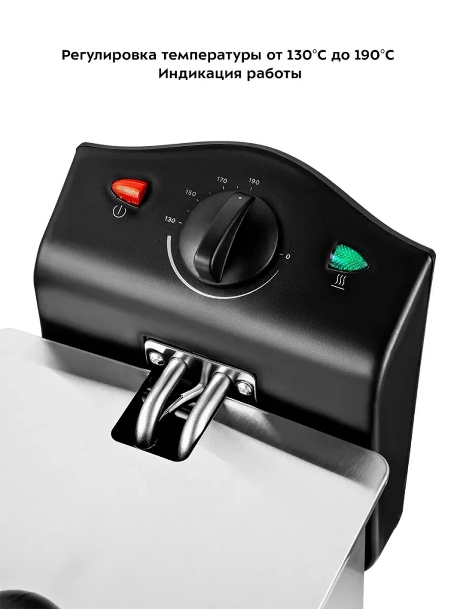 Фритюрница электрическая, 1.5 л, 6 режимов температуры, съемная чаша, серебристый