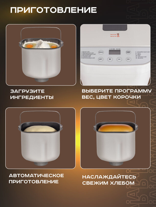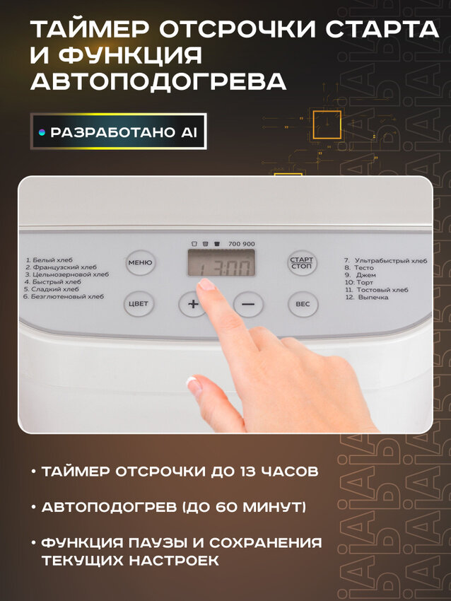 Хлебопечка с замесом теста 700/900 гр Pioneer MC02, 12 АВТОПРОГРАММ, выбор веса и цвета корочки, АВТОПОДОГРЕВ, таймер интересное: