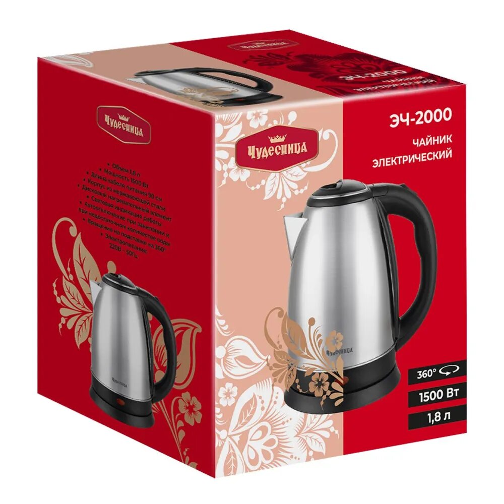 Купить Электрический чайник Чудесница ЭЧ-2000, 1500 Вт, 1.8 л, стальной/черный