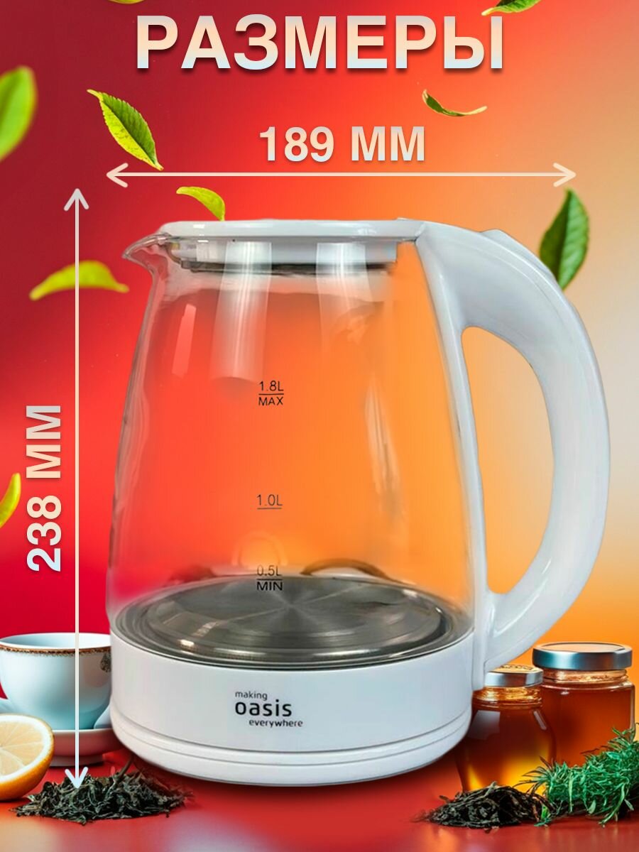 Электрический чайник Oasis Klima K-8GW, термостойкое стекло, 1,8 л интересное: