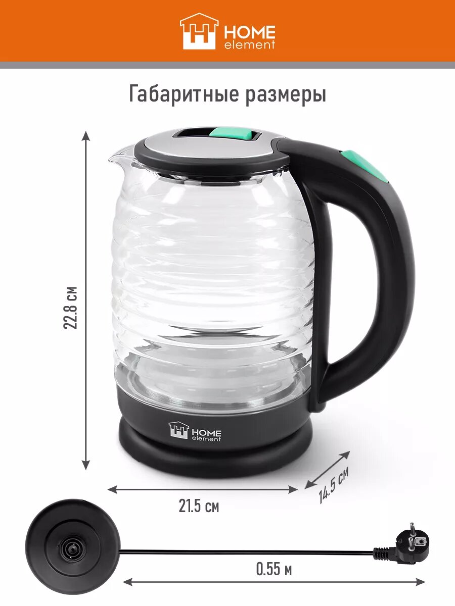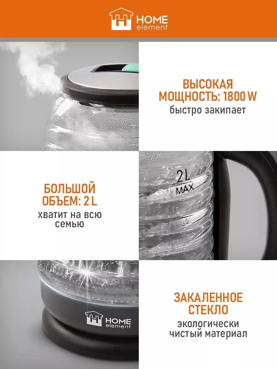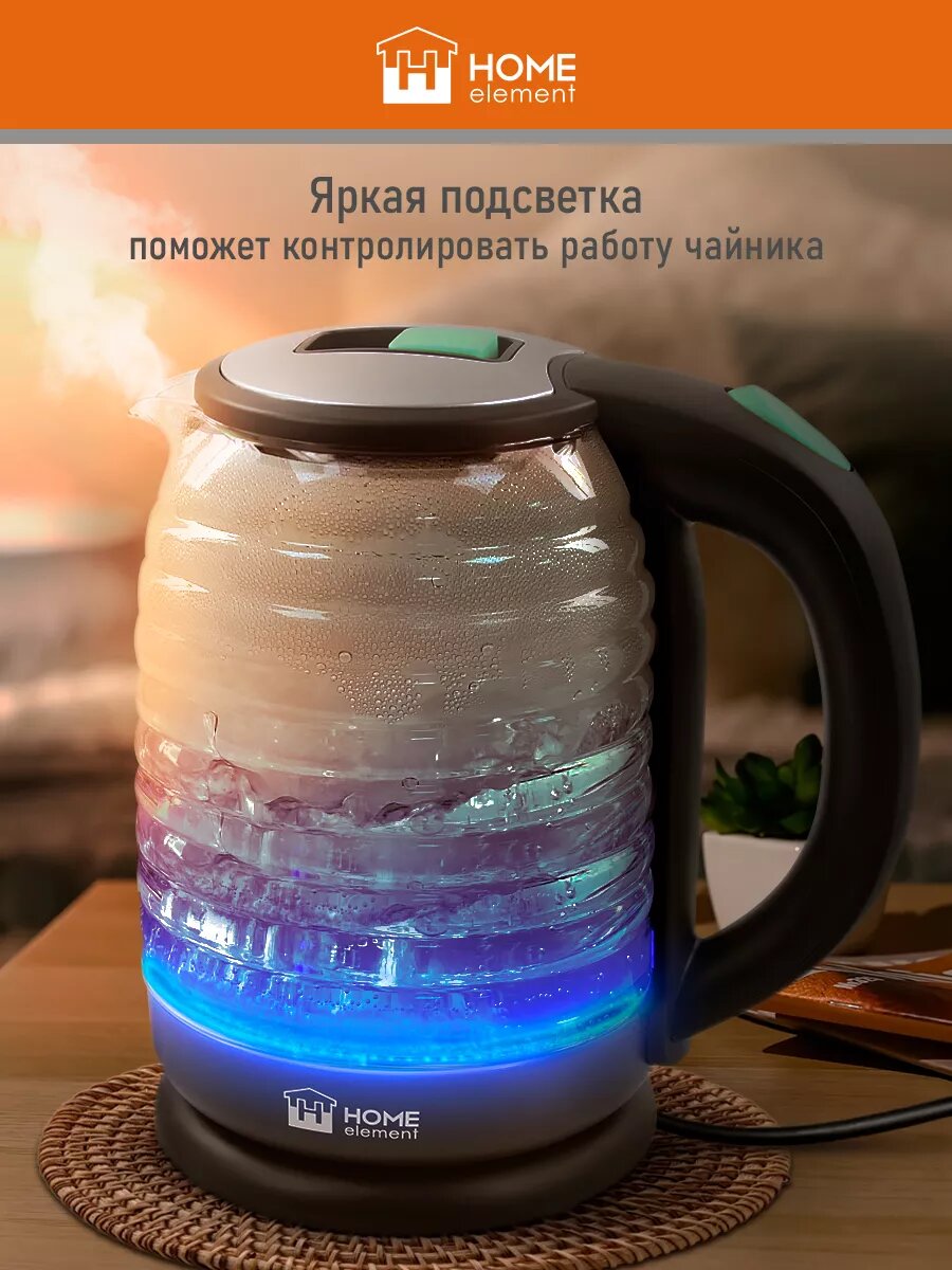 Электрический чайник HOME ELEMENT HE-KT2305 светлая яшма стеклянный, 2л интересное: