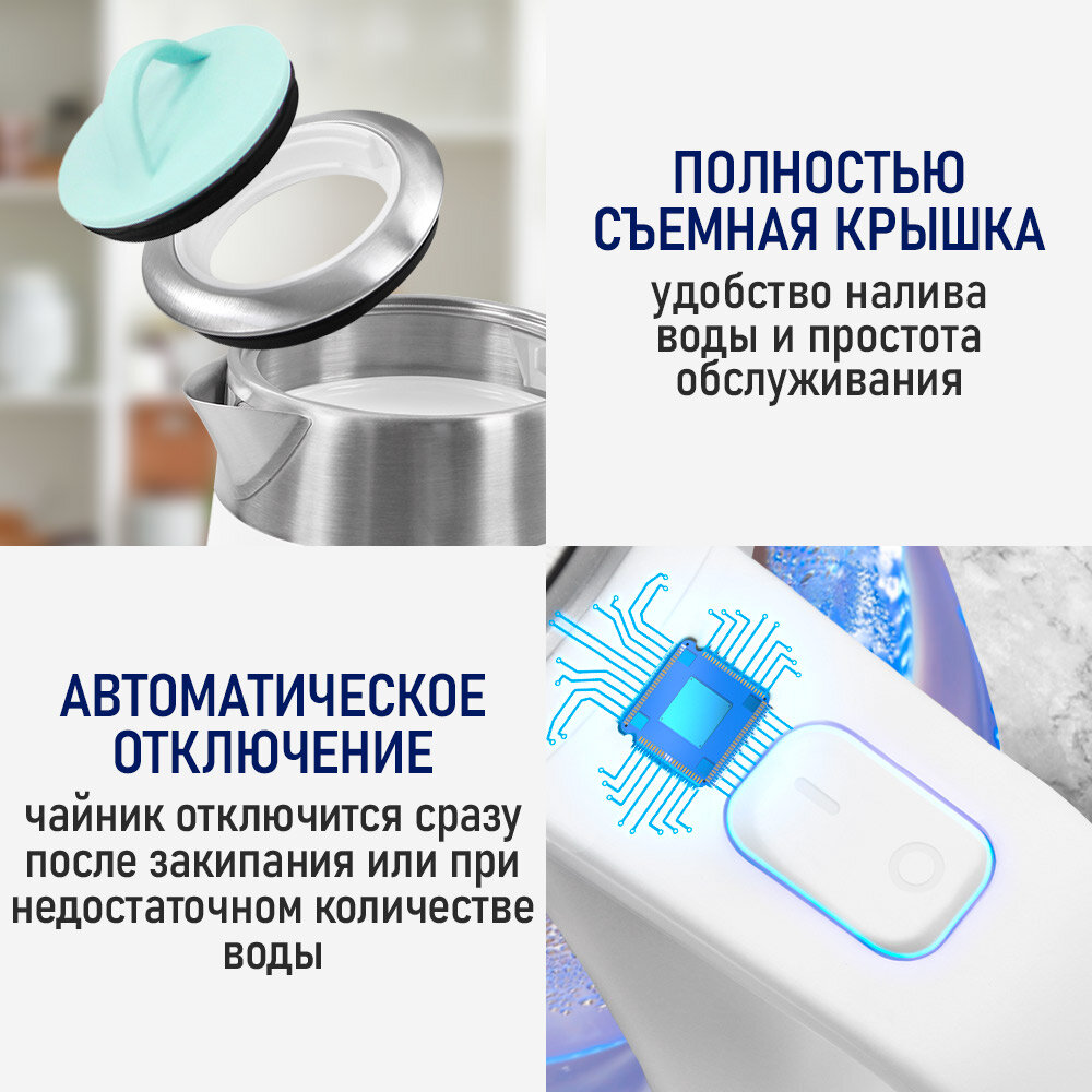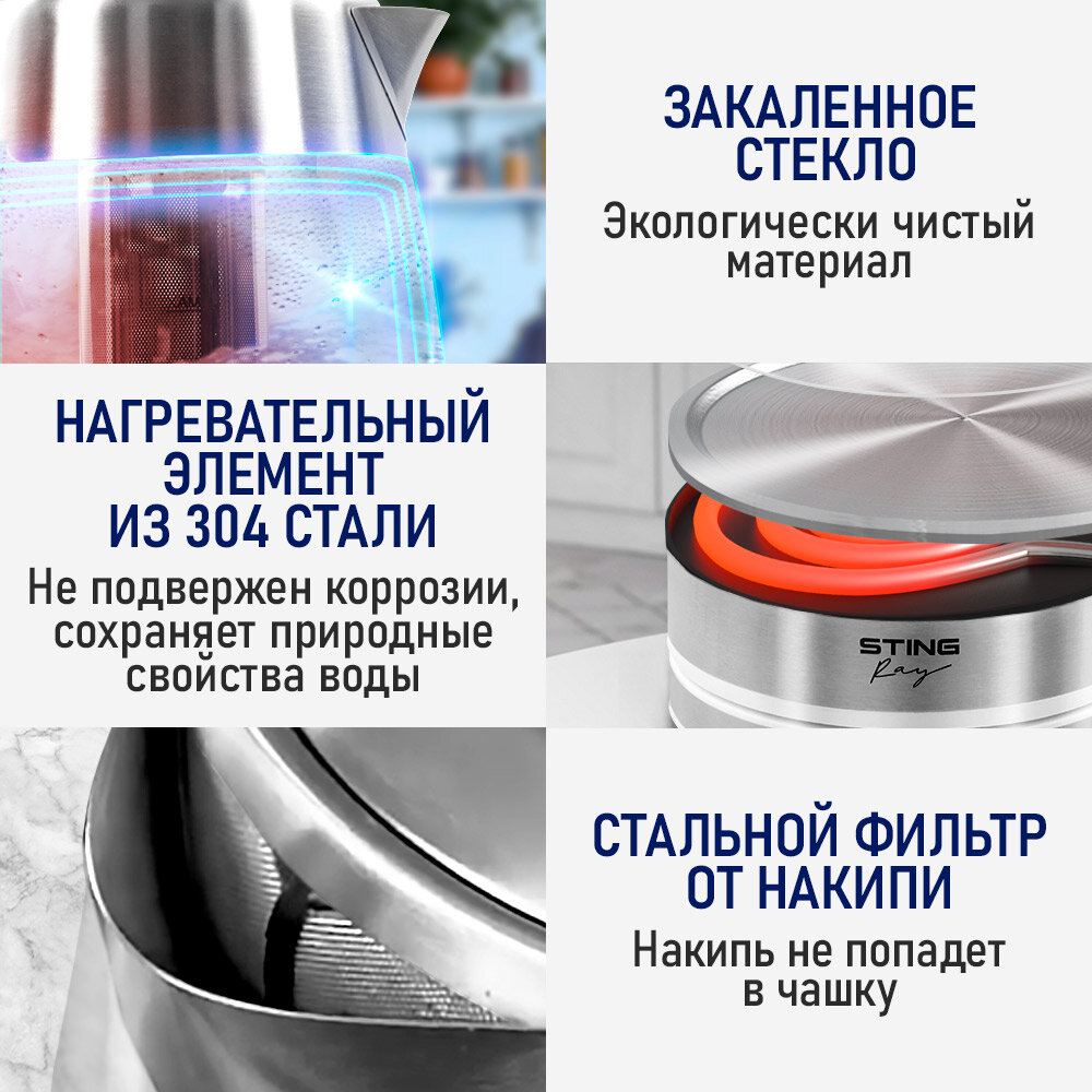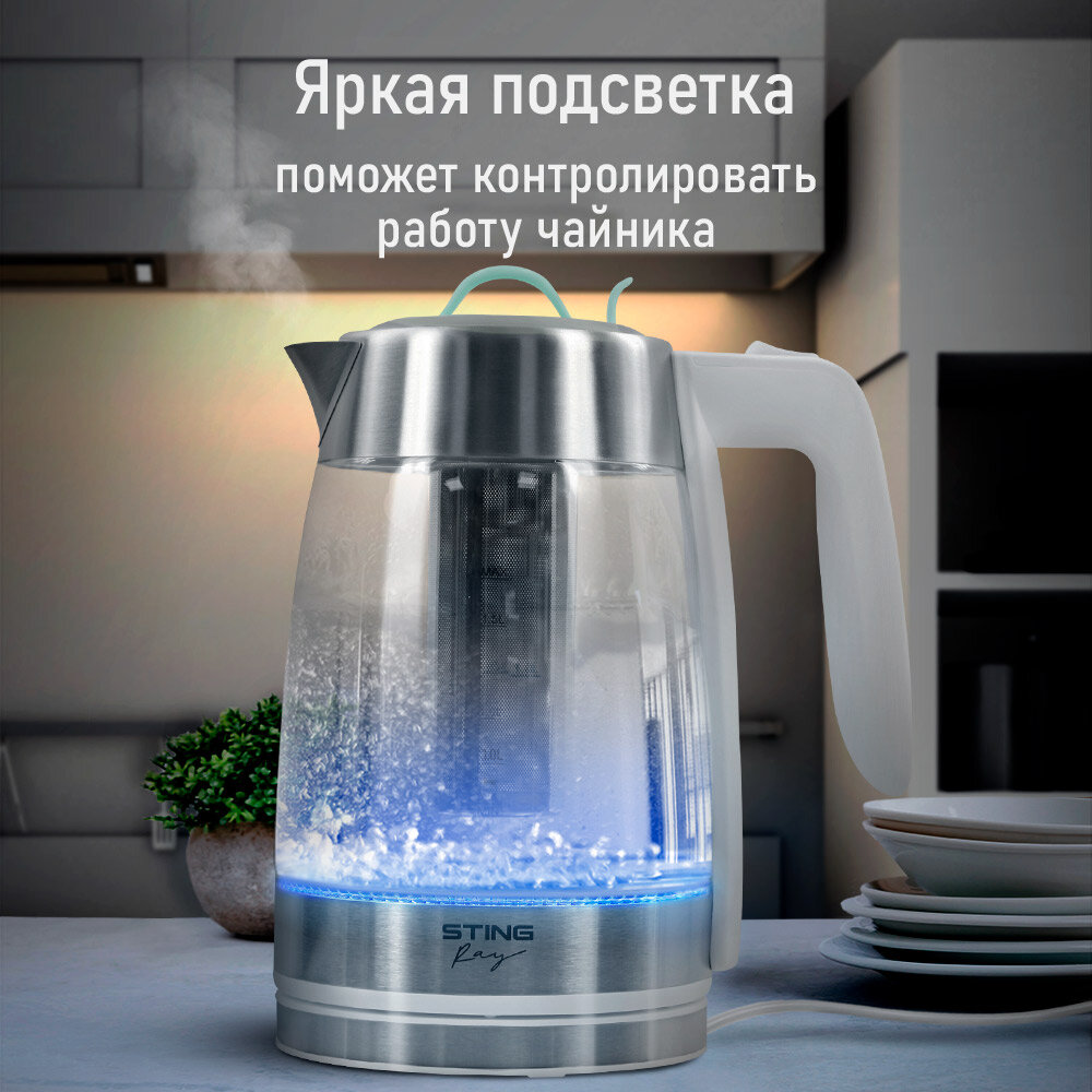 Электрический чайник STINGRAY ST-KT3006A белый/ментол стеклянный с подсветкой 1,8 л интересное: