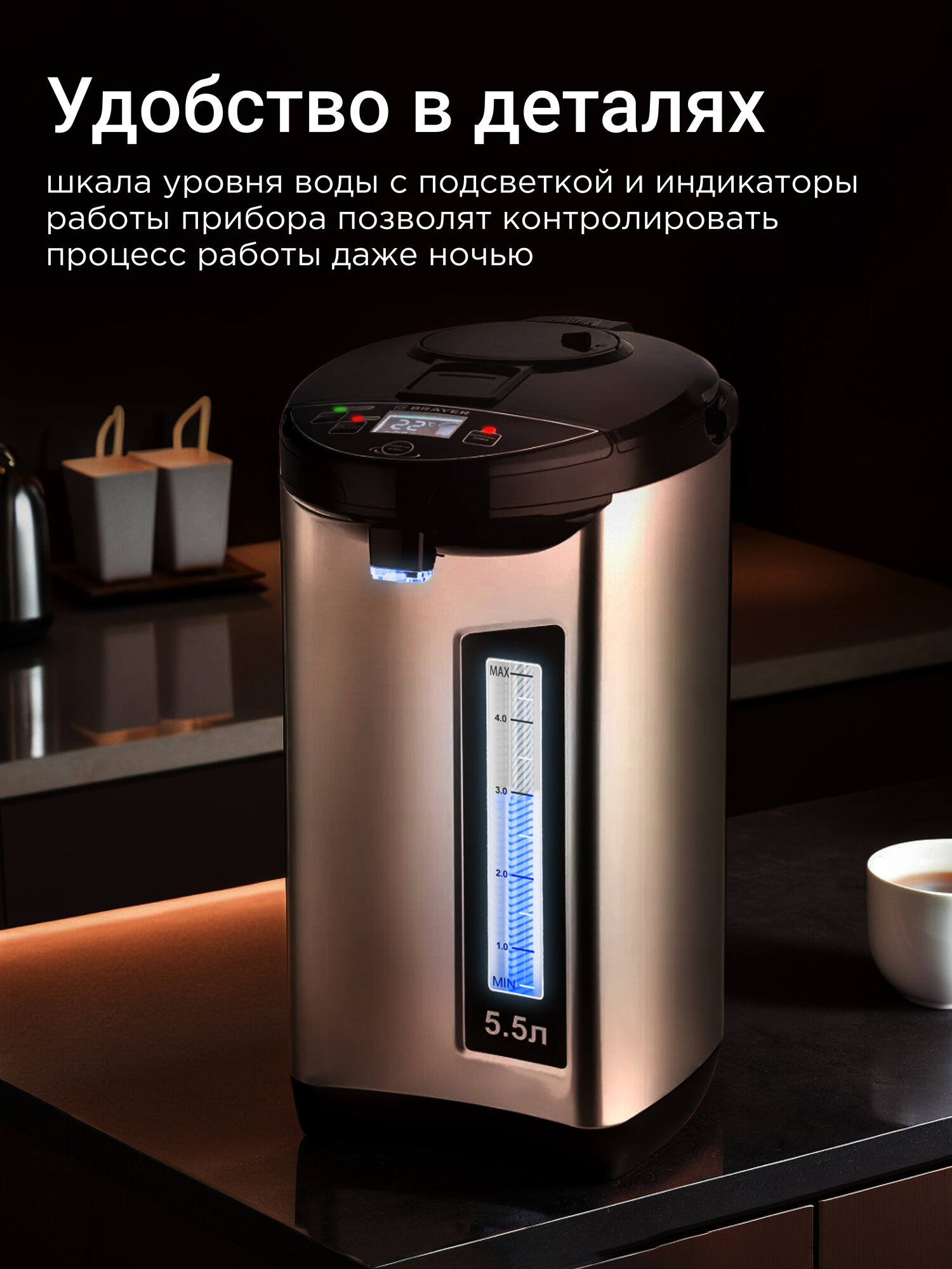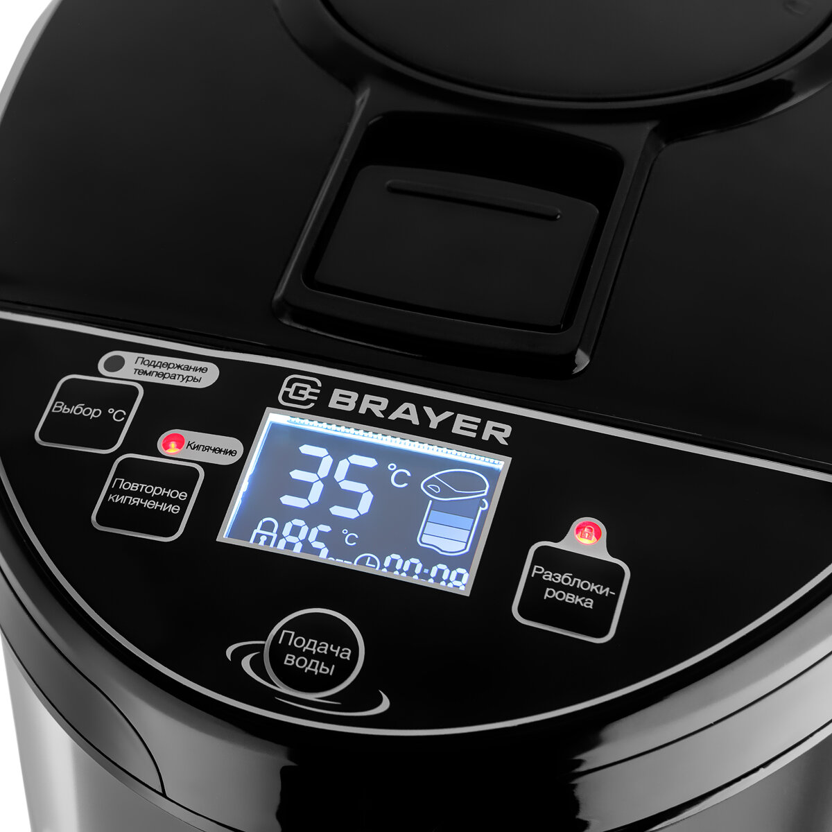 Термопот BRAYER BR1095, 5 л, 1200 Вт, дисплей, электронасос, черный