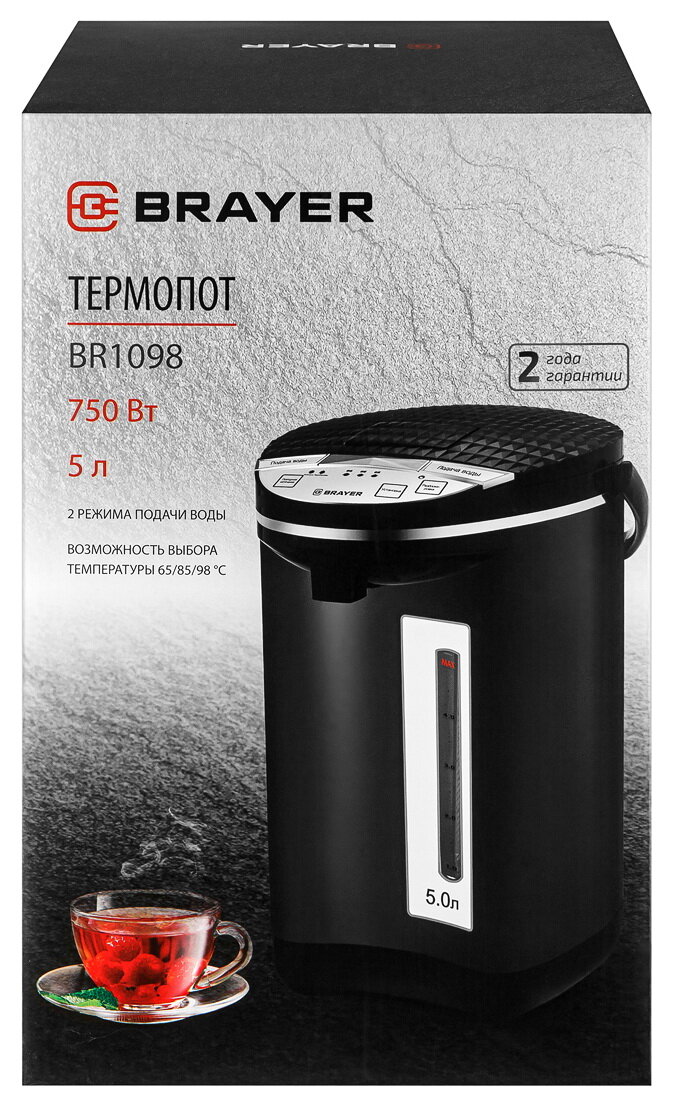 Термопот BRAYER BR1095, 5 л, 1200 Вт, дисплей, электронасос, черный