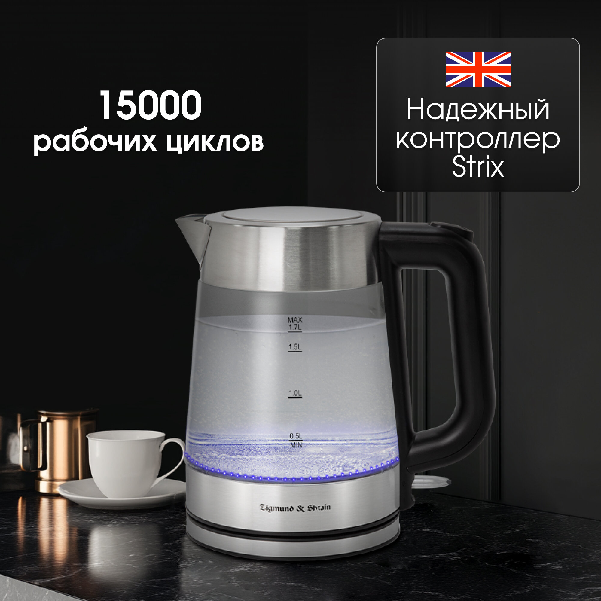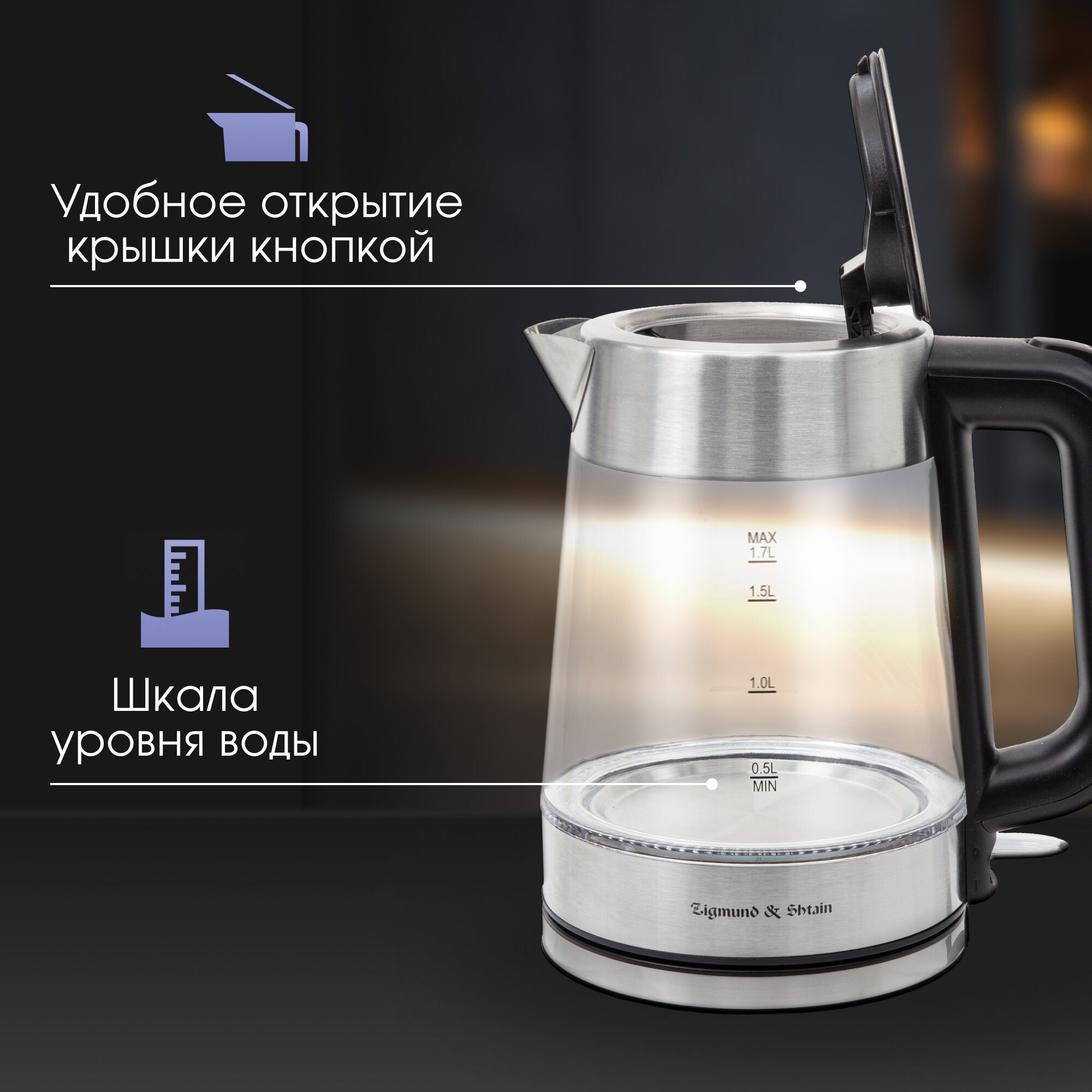 Электрический чайник Zigmund & Shtain KE-926, 2200 вт, 1.7 л, сталь/черный интересное: