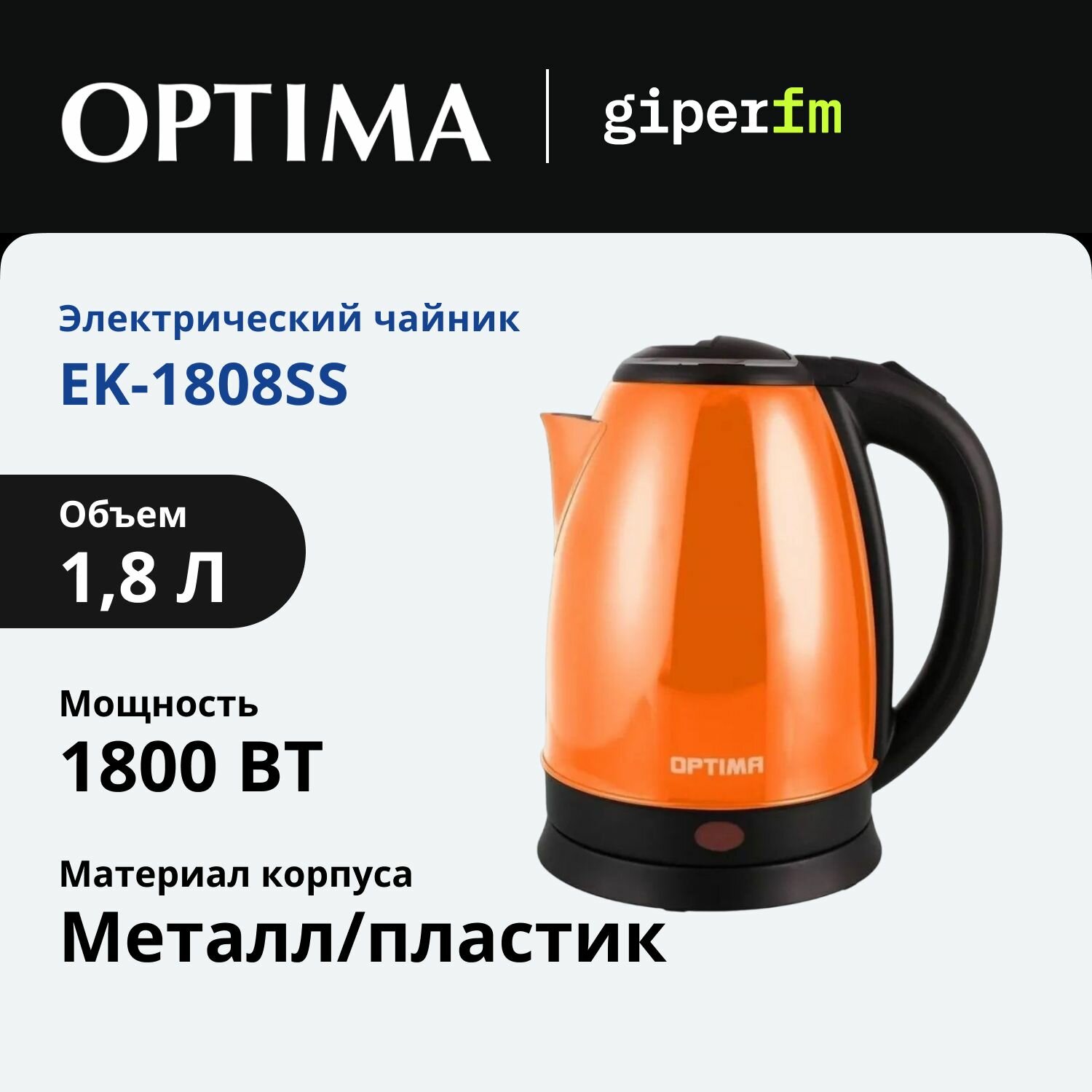 Купить Чайник электрический Optima EK-1808SS, мощность 1800 Вт, объем 1.8 л, оранжевый