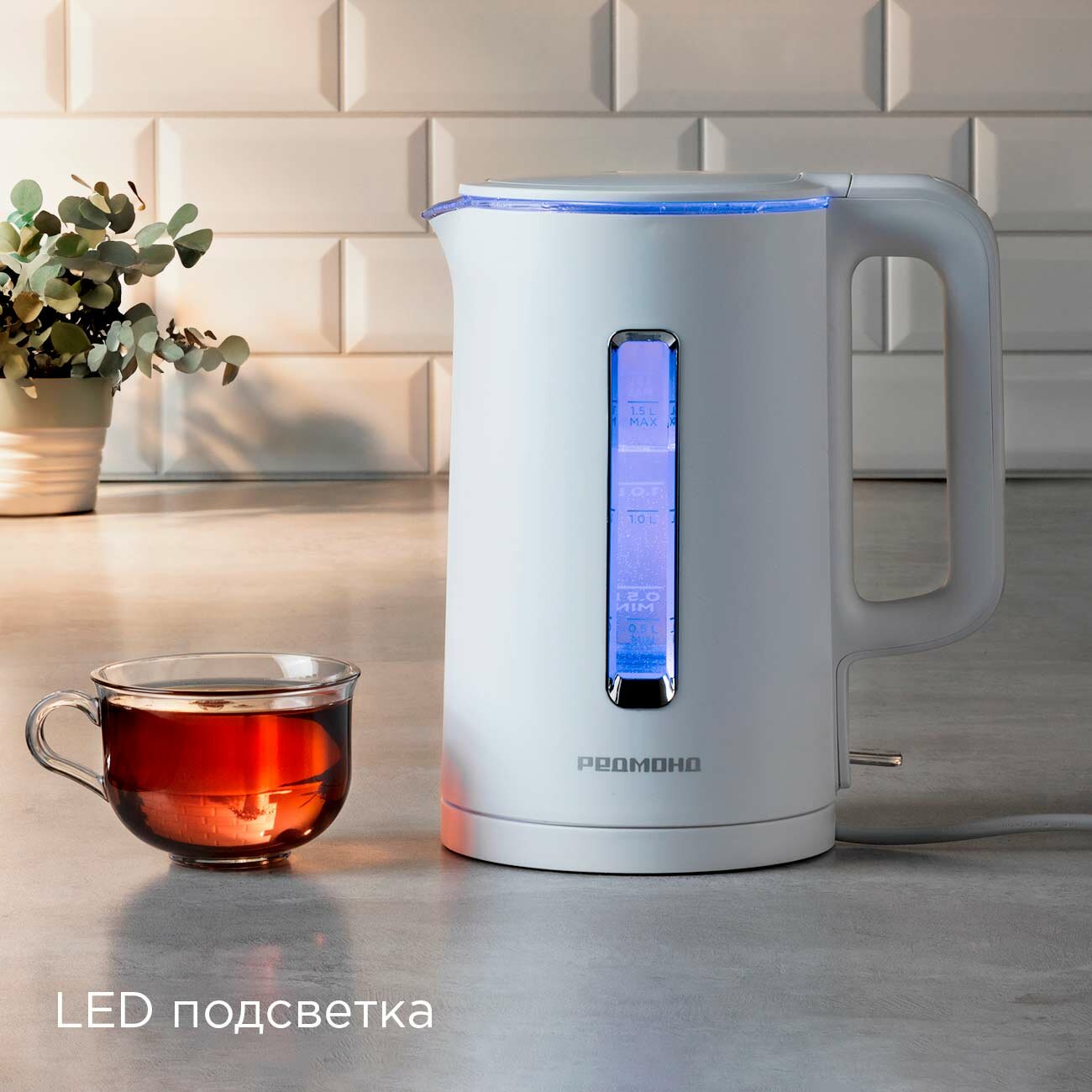 Электрический чайник РЕДМОНД KG254, с термостойкой стеклянной колбой, автоотключение, LED-подсветка, 1,5 л, белый интересное: