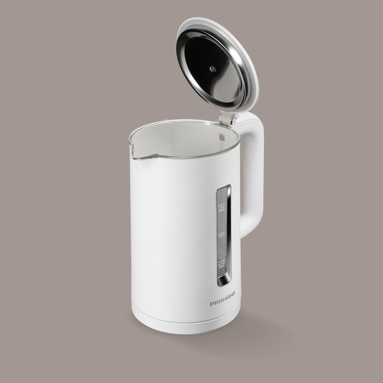 Купить Электрический чайник РЕДМОНД KG254, с термостойкой стеклянной колбой, автоотключение, LED-подсветка, 1,5 л, белый