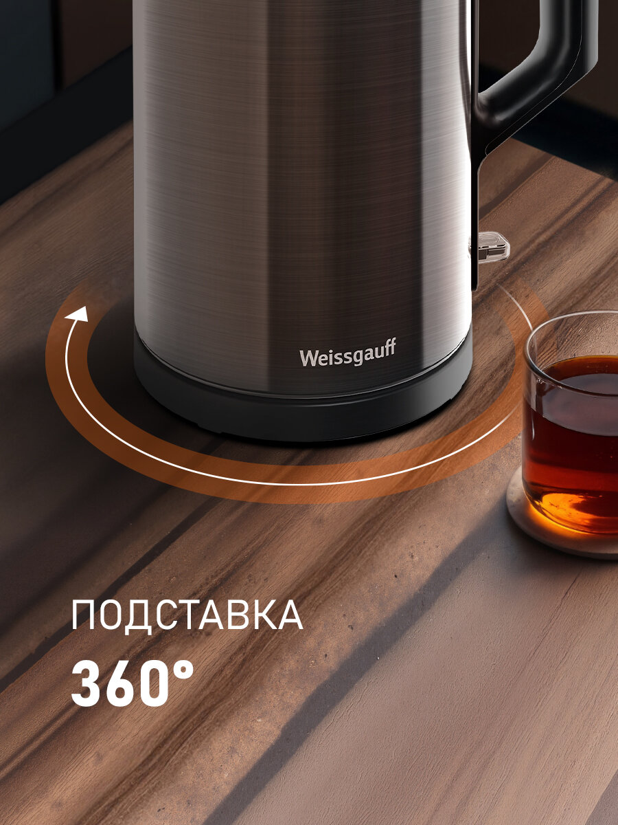 Чайник электрический Weissgauff WK 1510 Nero BodyCool, Объем 1,7 литра, Двухстенная конструкция интересное: