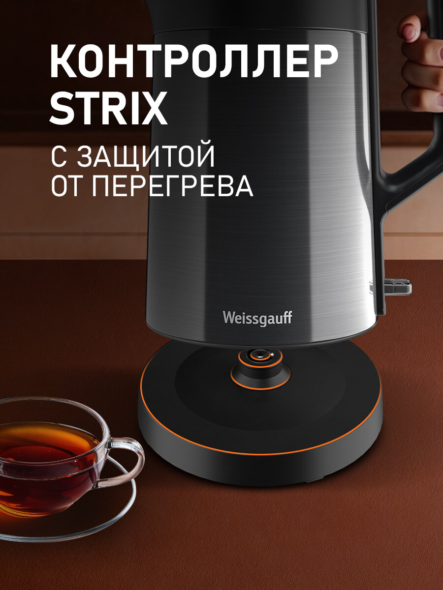 Купить Чайник электрический Weissgauff WK 1510 Nero BodyCool, Объем 1,7 литра, Двухстенная конструкция