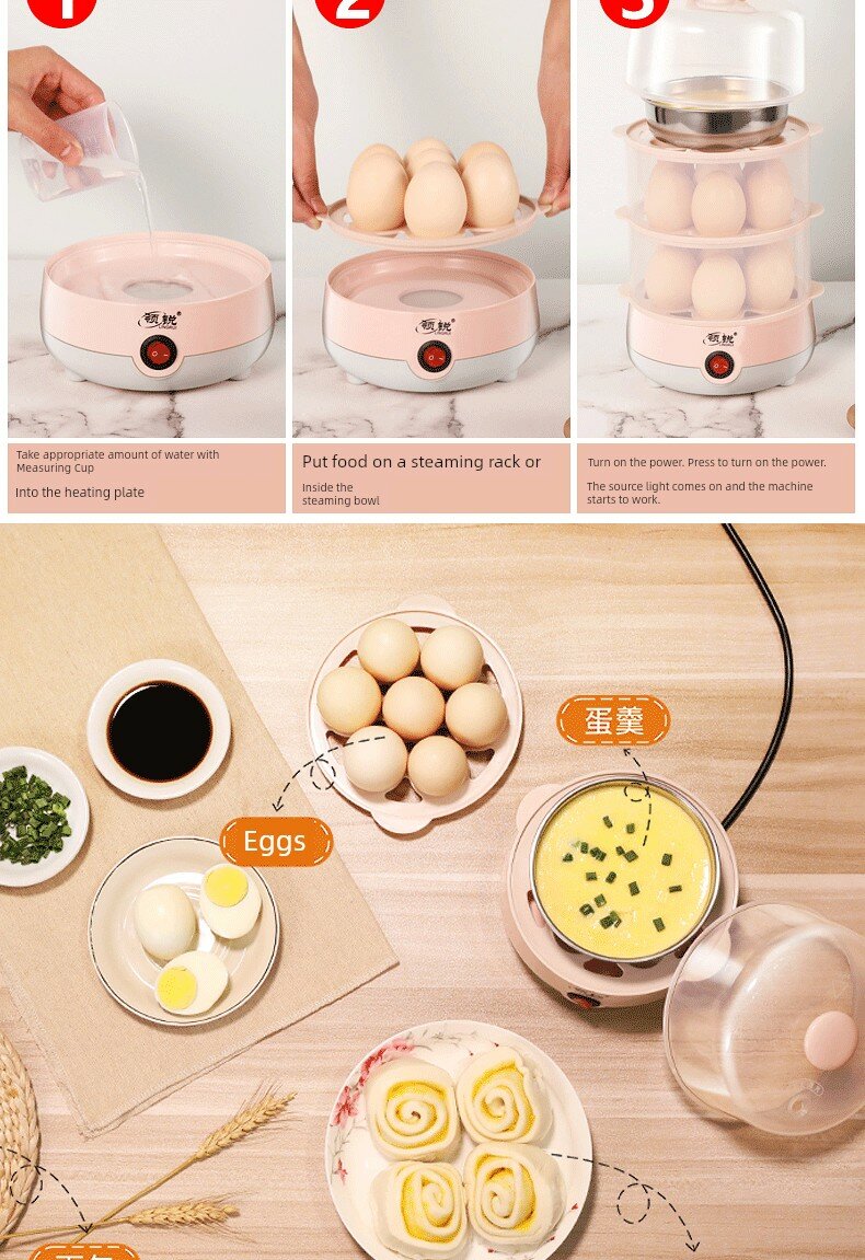 Мини-пароварка для яиц с автоотключением, розовая, три яруса, с чашей для приготовления на пару