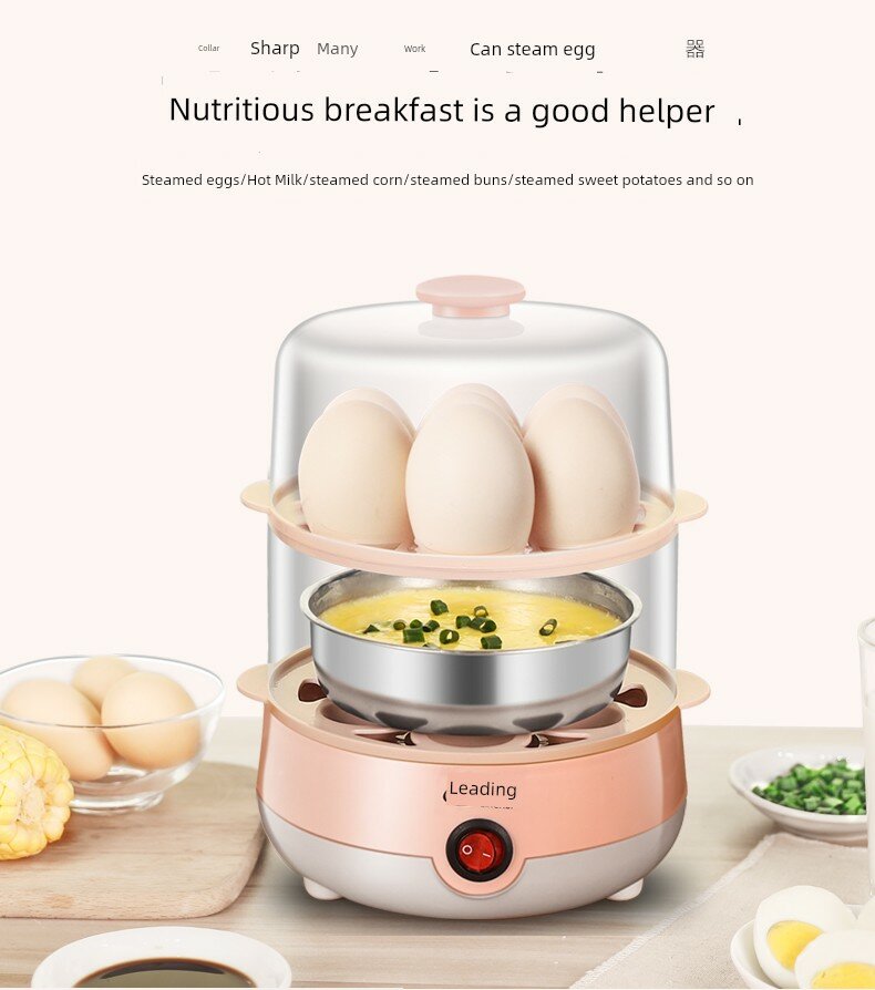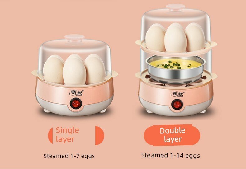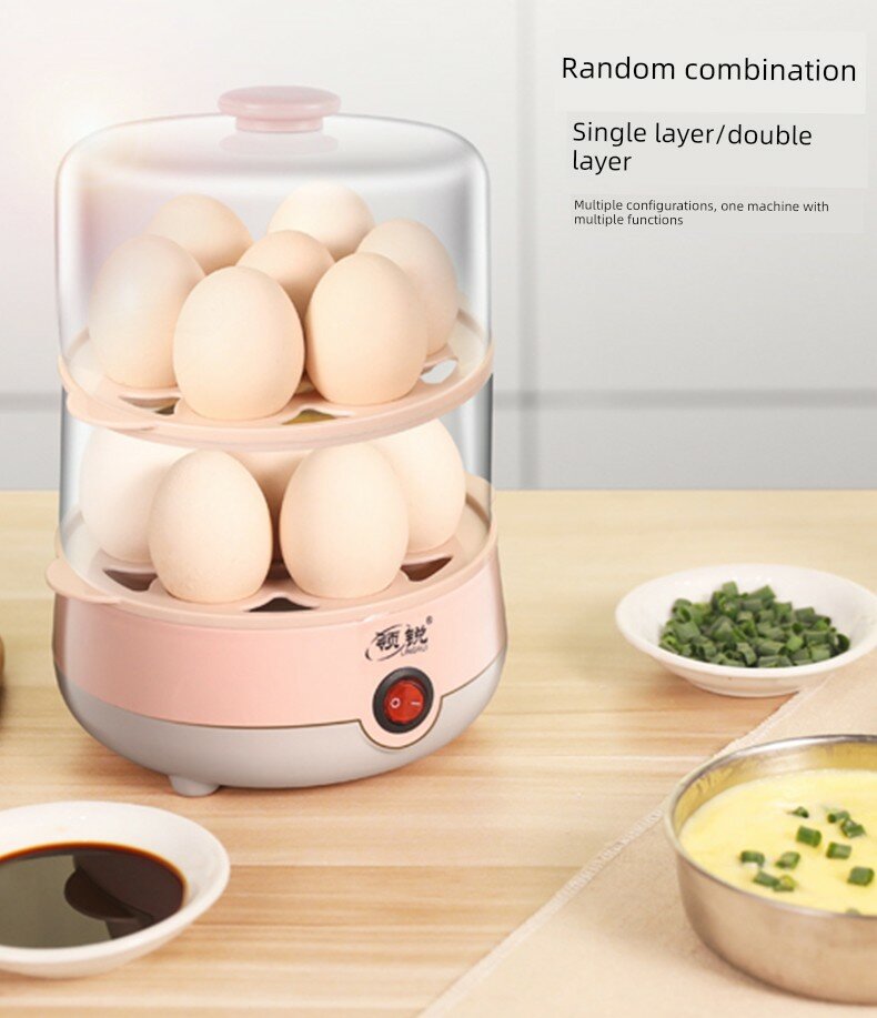 Мини-пароварка для яиц с автоотключением, розовая, два яруса, с чашей для приготовления на пару