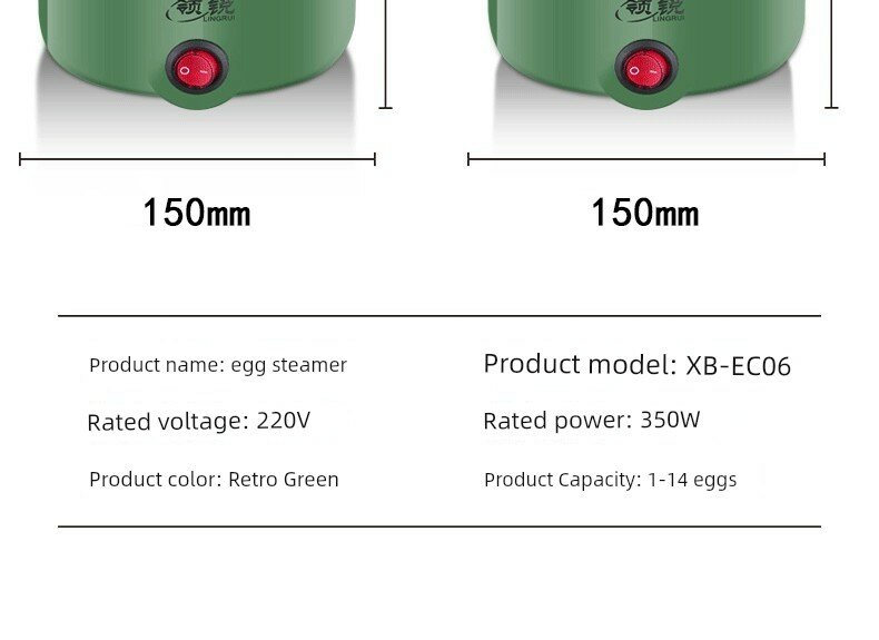 Мини-пароварка для яиц с автоотключением, зеленая, один ярус, с таймером и чашей