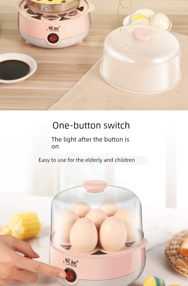 Мини-пароварка для яиц с автоотключением, розовая, один ярус, с чашей для приготовления на пару