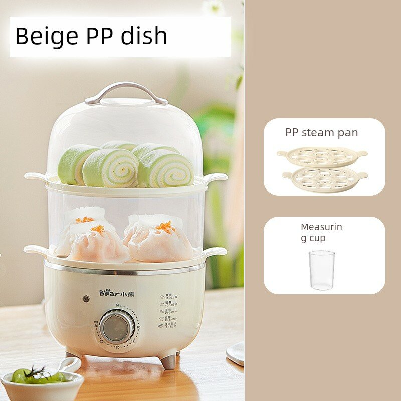 Двухъярусная пароварка для яиц с подставкой из нержавеющей стали, бежевая