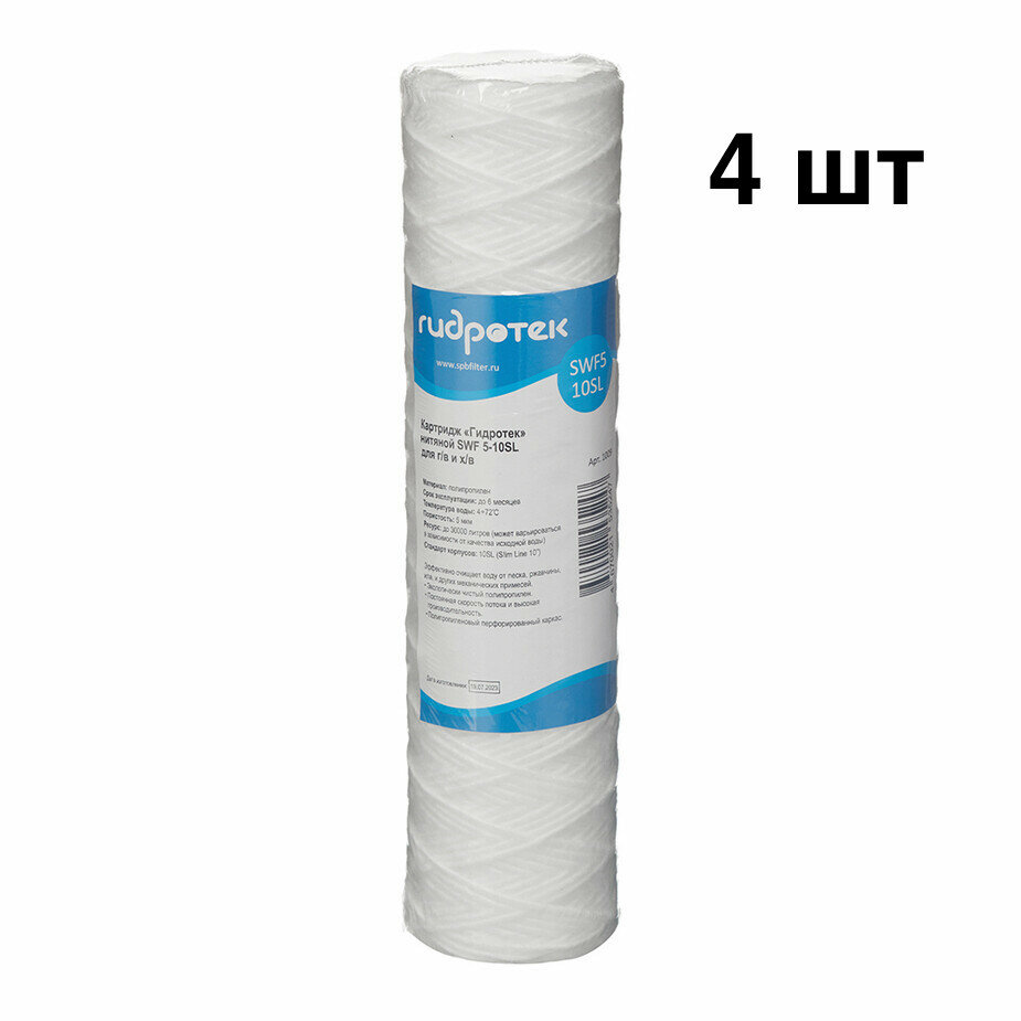 Купить Картридж 4 шт для фильтра Гидротек SWF для горячей и холодной воды нитяной 5 мкм 10SL