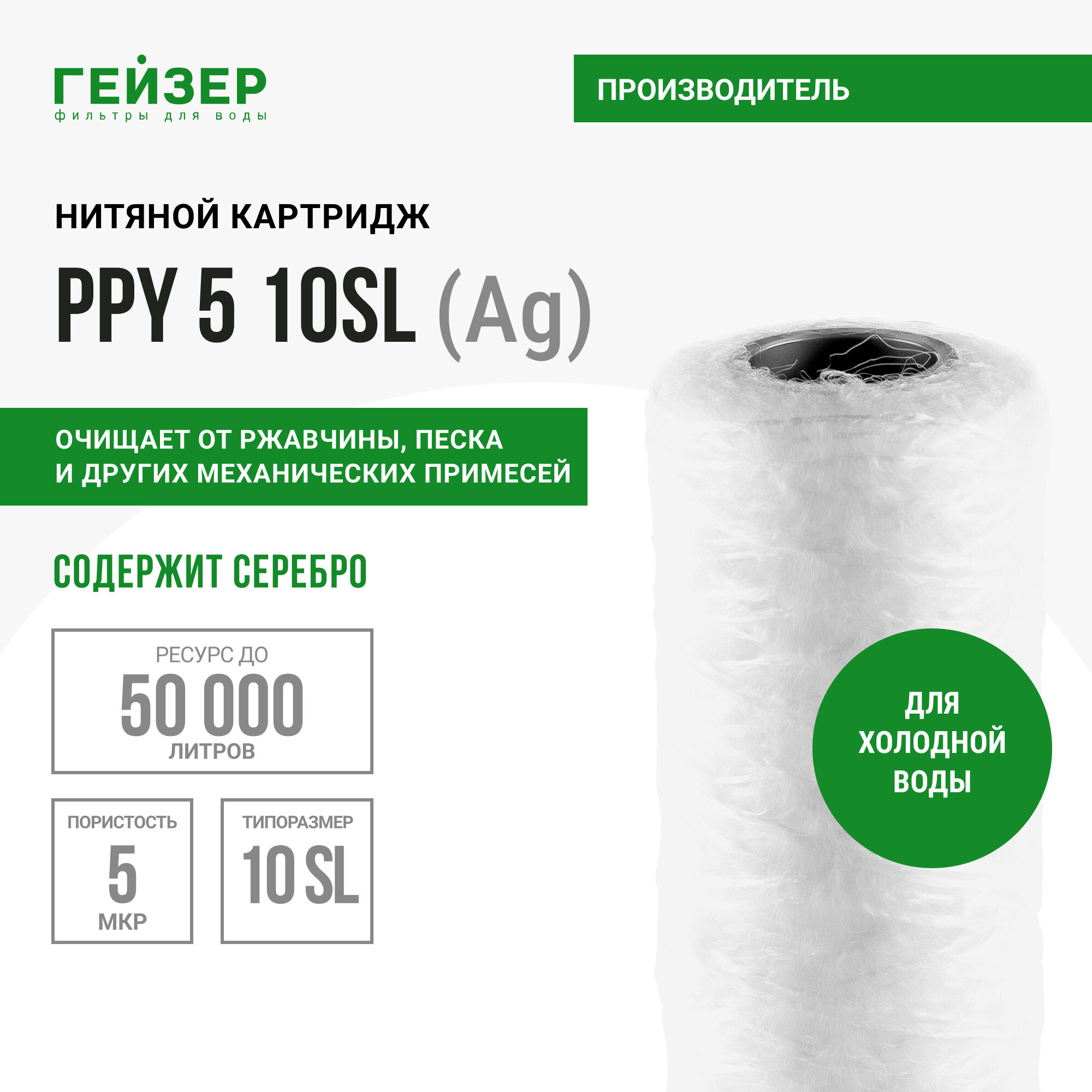 Картридж механический Гейзер PPY 5 (Ag) - 10SL, для холодной воды, убирает ржавчину, песок, ил и др. примеси, 28165 интересное: