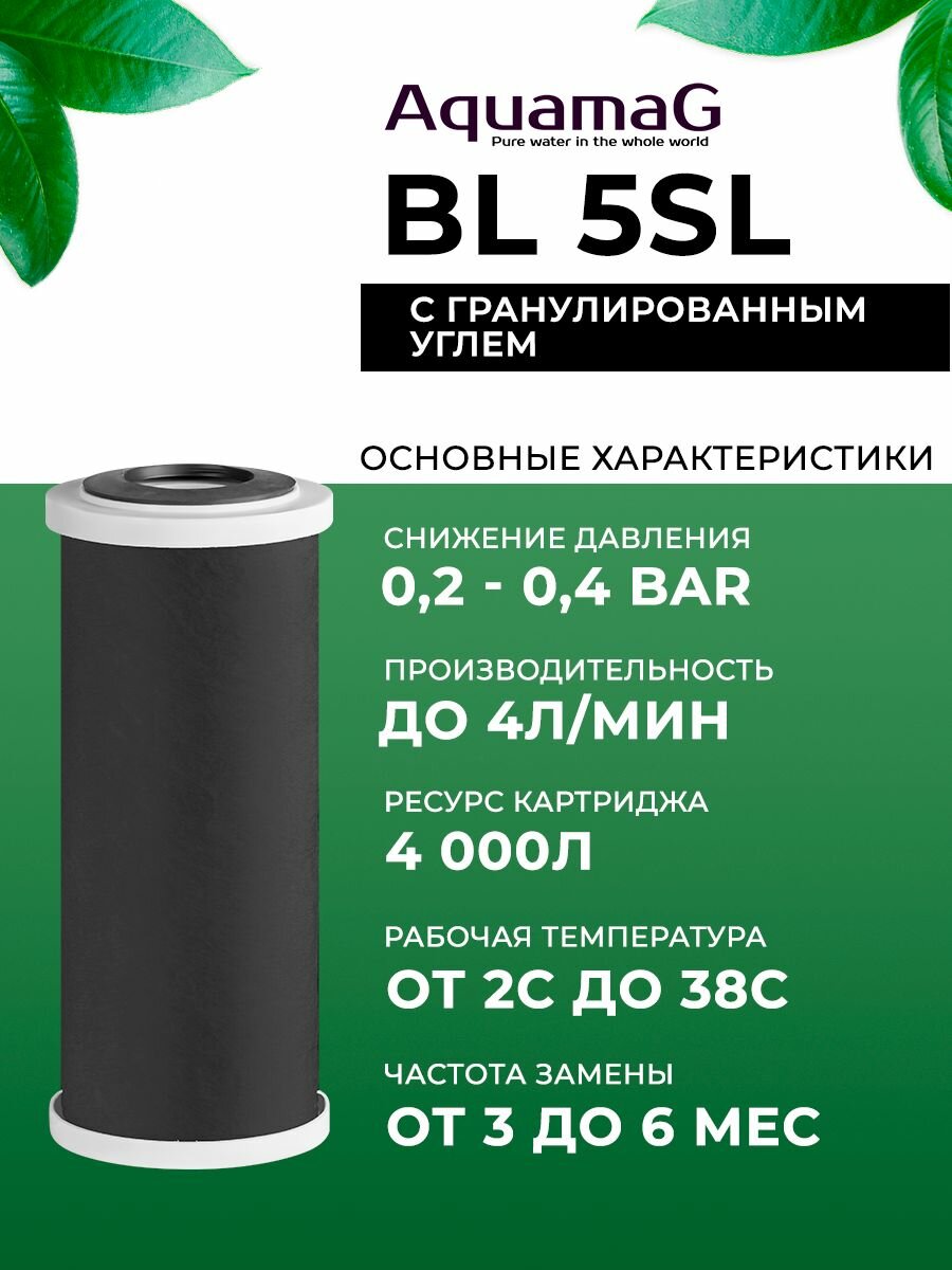 Угольный картридж для фильтра AquamaG BL 5 SL , для сорбционной очистки воды (от хлора и органических соединений) 2 шт интересное:
