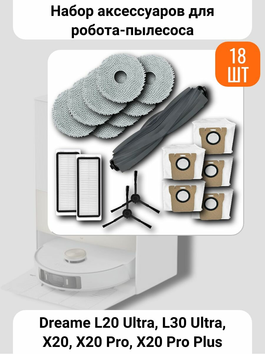 Комплект из 18и расходников для робота пылеcоса Dreame Bot L20 Ultra, L30 Ultra, X20 Pro Plus интересное: