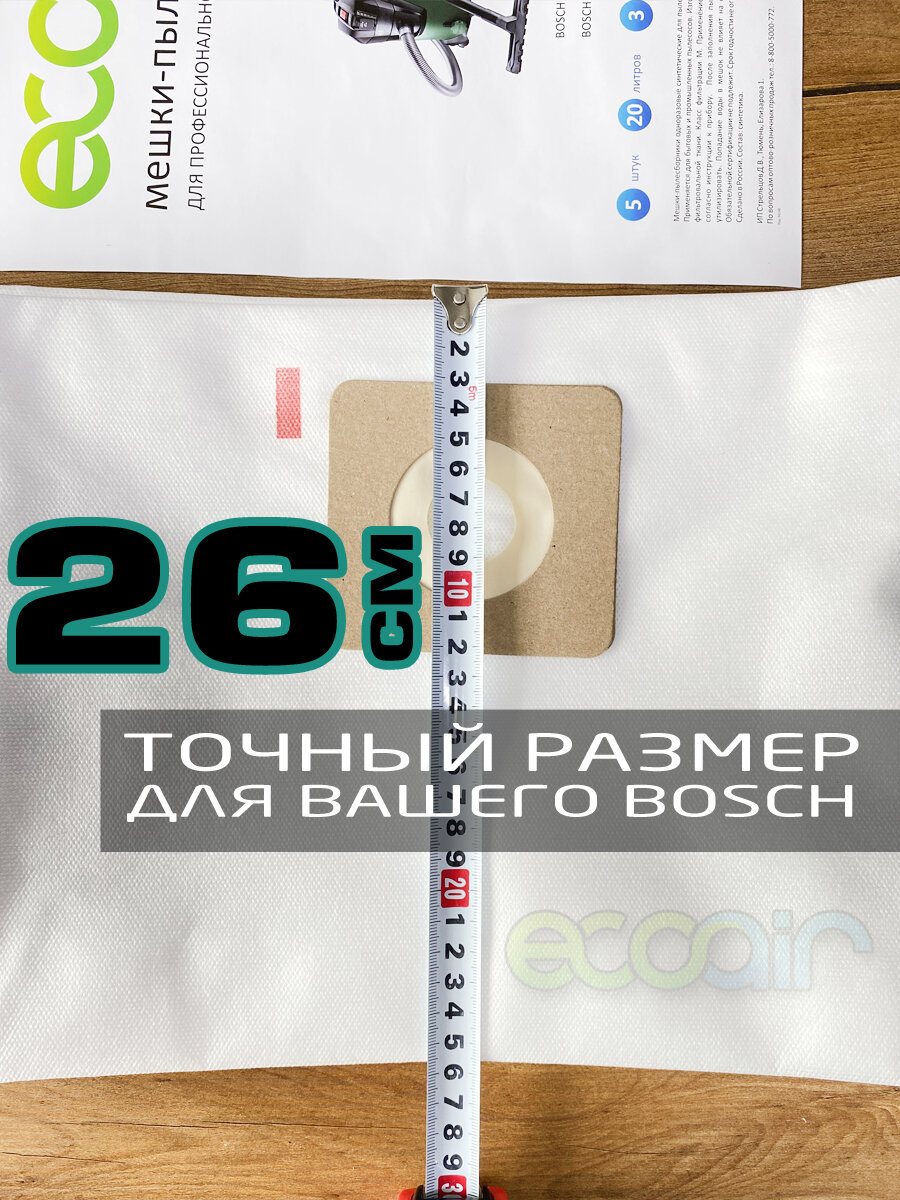 Мешки одноразовые тканевые ECOAIR BOSCH для пылесоса BOSCH Universal Vac 15 и BOSCH Advanced Vac 20, 5 шт интересное: