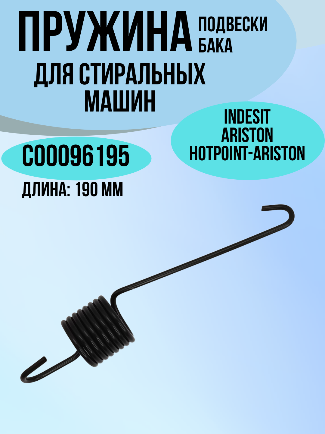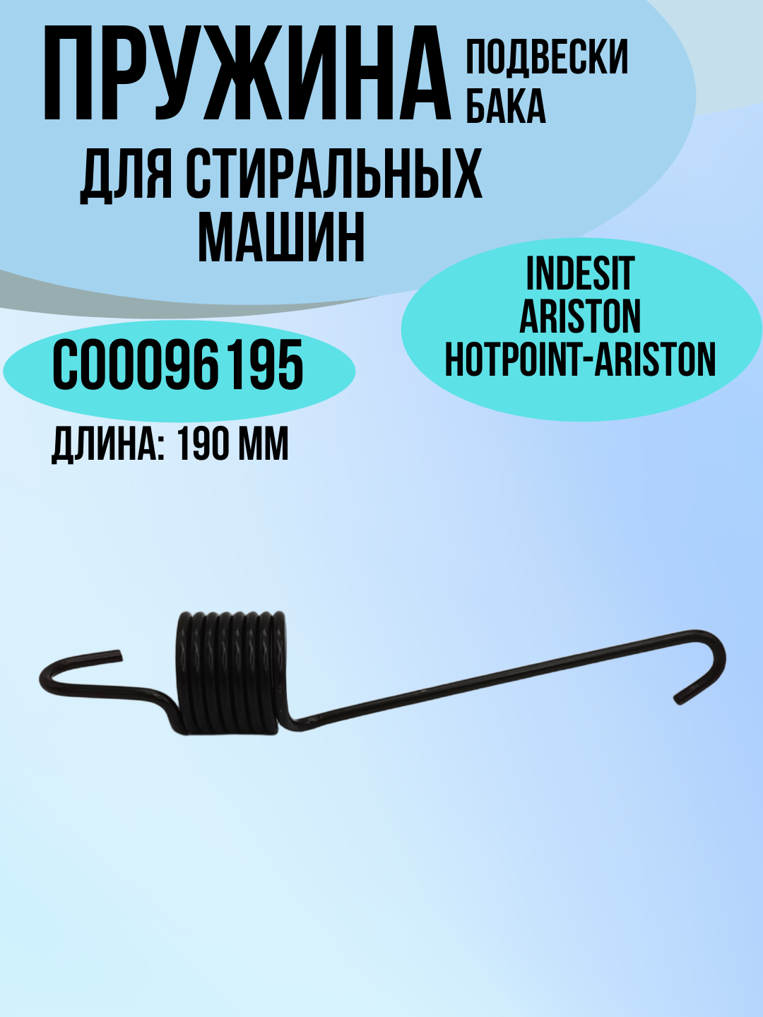Пружина подвески бака стиральной машины Indesit, Ariston, Whirpool C00096195, C00118009 , 096195, длинна 195 мм интересное: