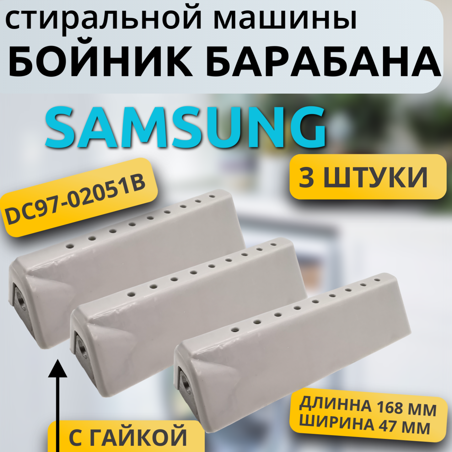 Купить Ребро активатор барабана Samsung комплект 3 штуки для стиральных машин Samsung гайкой, длина 168 мм DC97-02051B