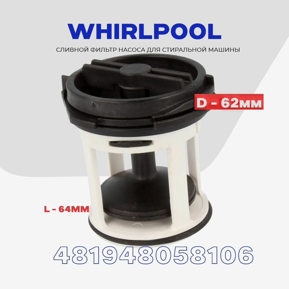 Фильтр улитки сливного насоса для стиральной машины Whirlpool 481948058106 ( 481241868027 ) / Грязеуловитель интересное:
