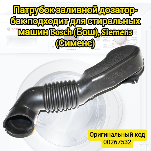 Патрубок заливной гофрированный дозатор-бак 00267532 для стиральных машин Bosch (Бош), Siemens (Сименс) интересное: