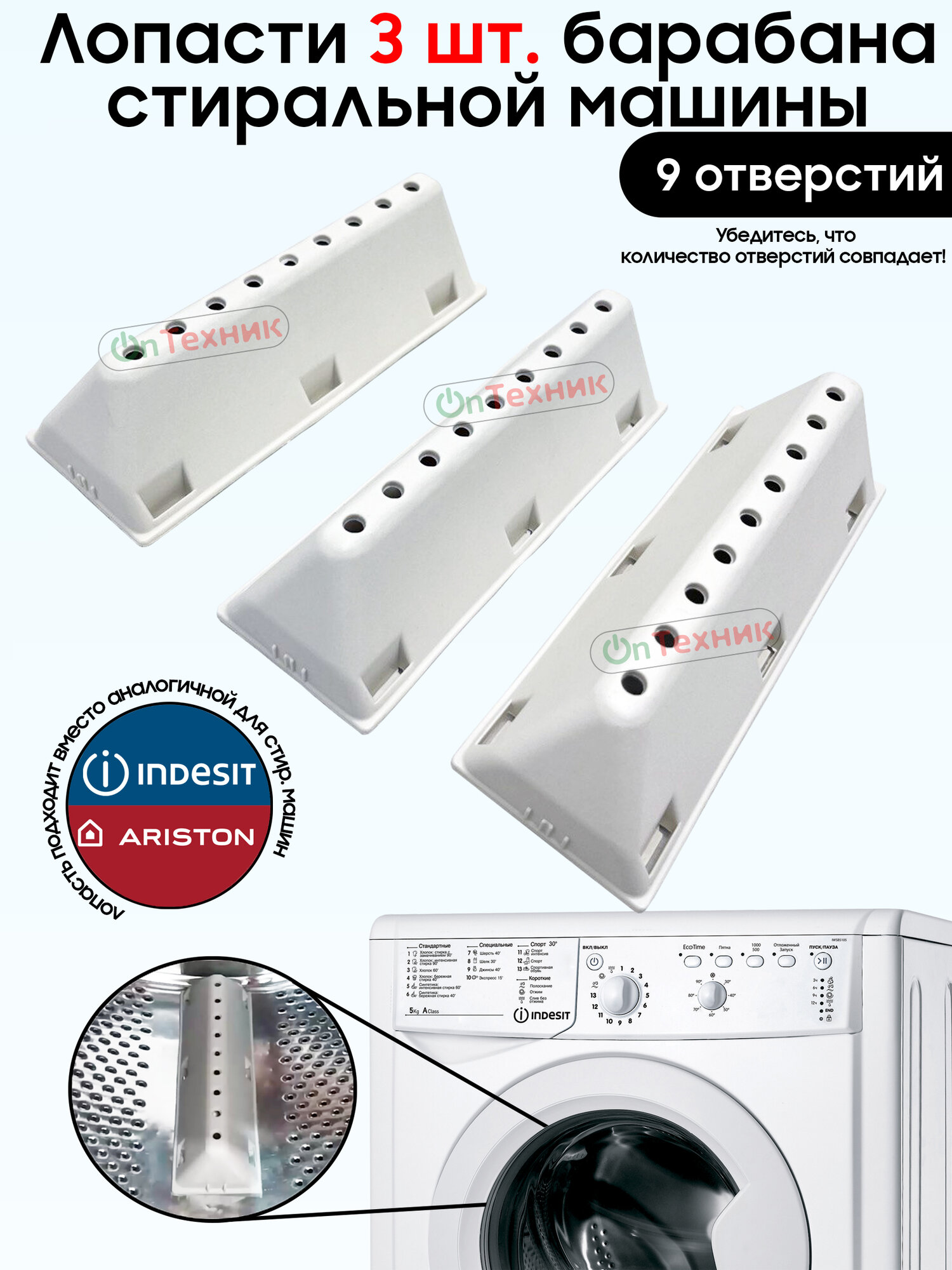 Комплект 3шт. лопастей (бойник, ребро) стиральной машины Indesit, Ariston, C00097565 097565 С00097565 482000028220 DRM103ID 140AR29 WM3147W интересное:
