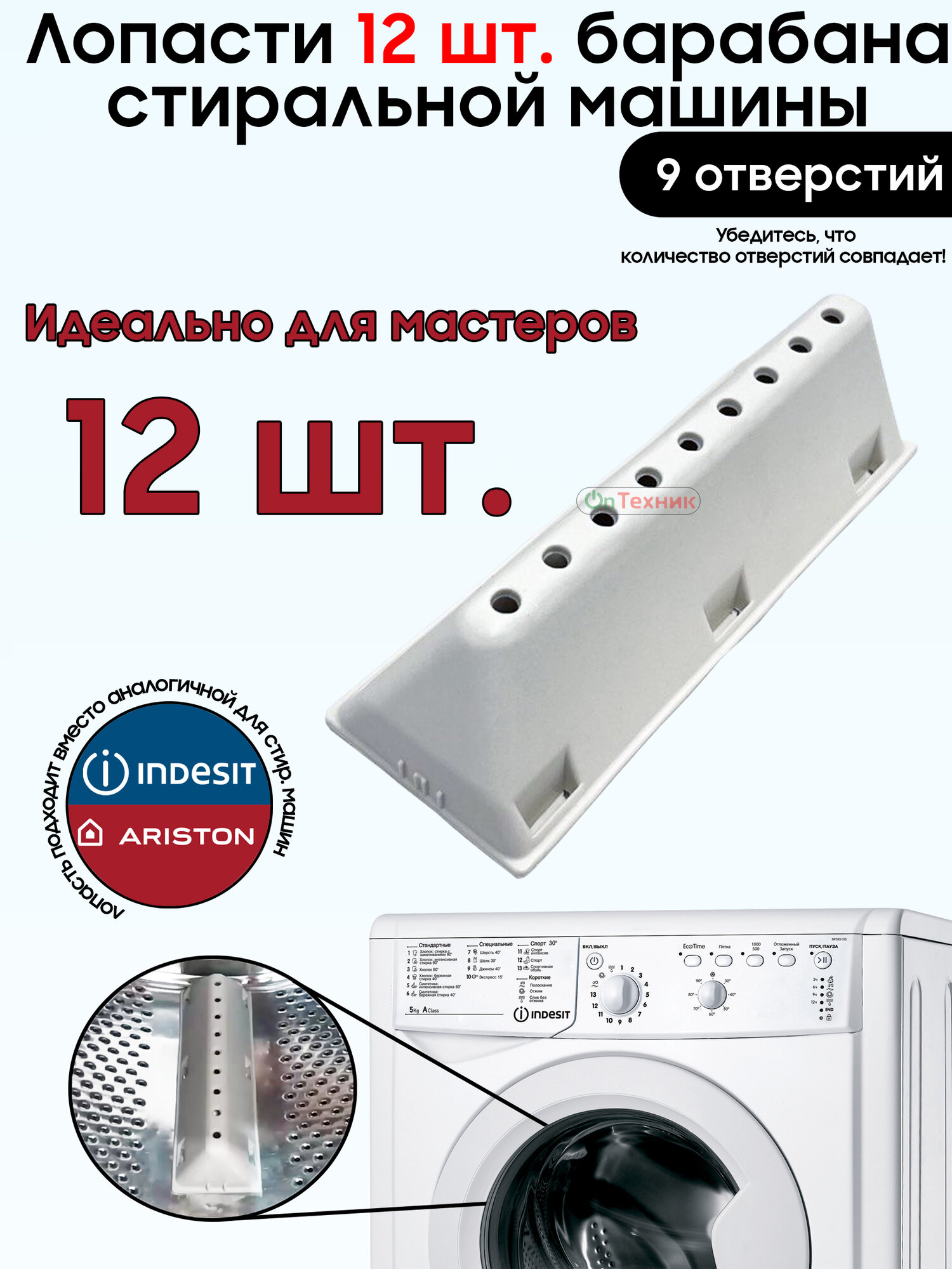Опт 12шт. лопастей (бойник, ребро) стиральной машины Indesit, Ariston, C00097565 097565 С00097565 482000028220 DRM103ID 140AR29 WM3147W интересное: