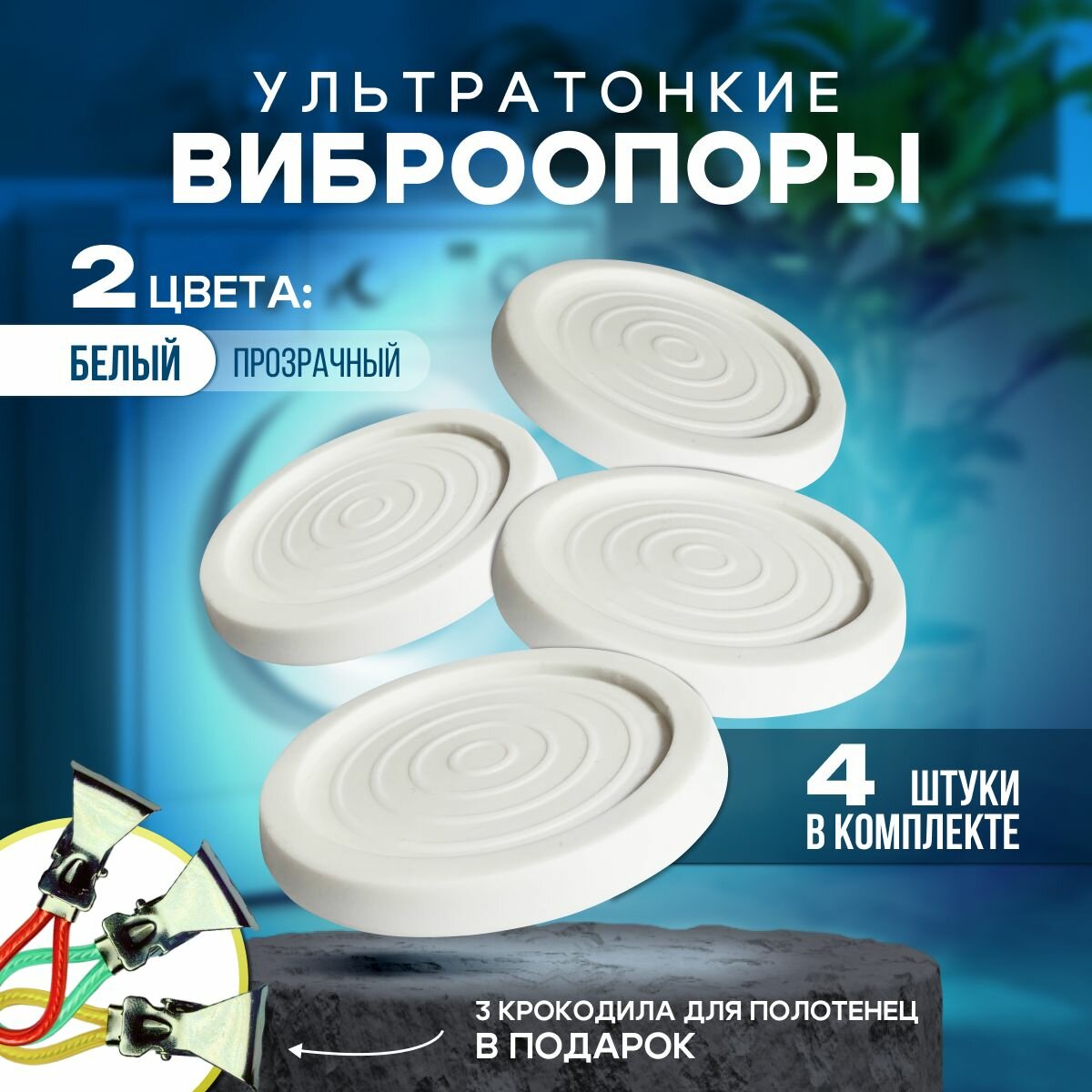Антивибрационные подставки для стиральной машины, виброопоры для бытовой техники (Ультратонкие), белые, 4 шт. интересное: