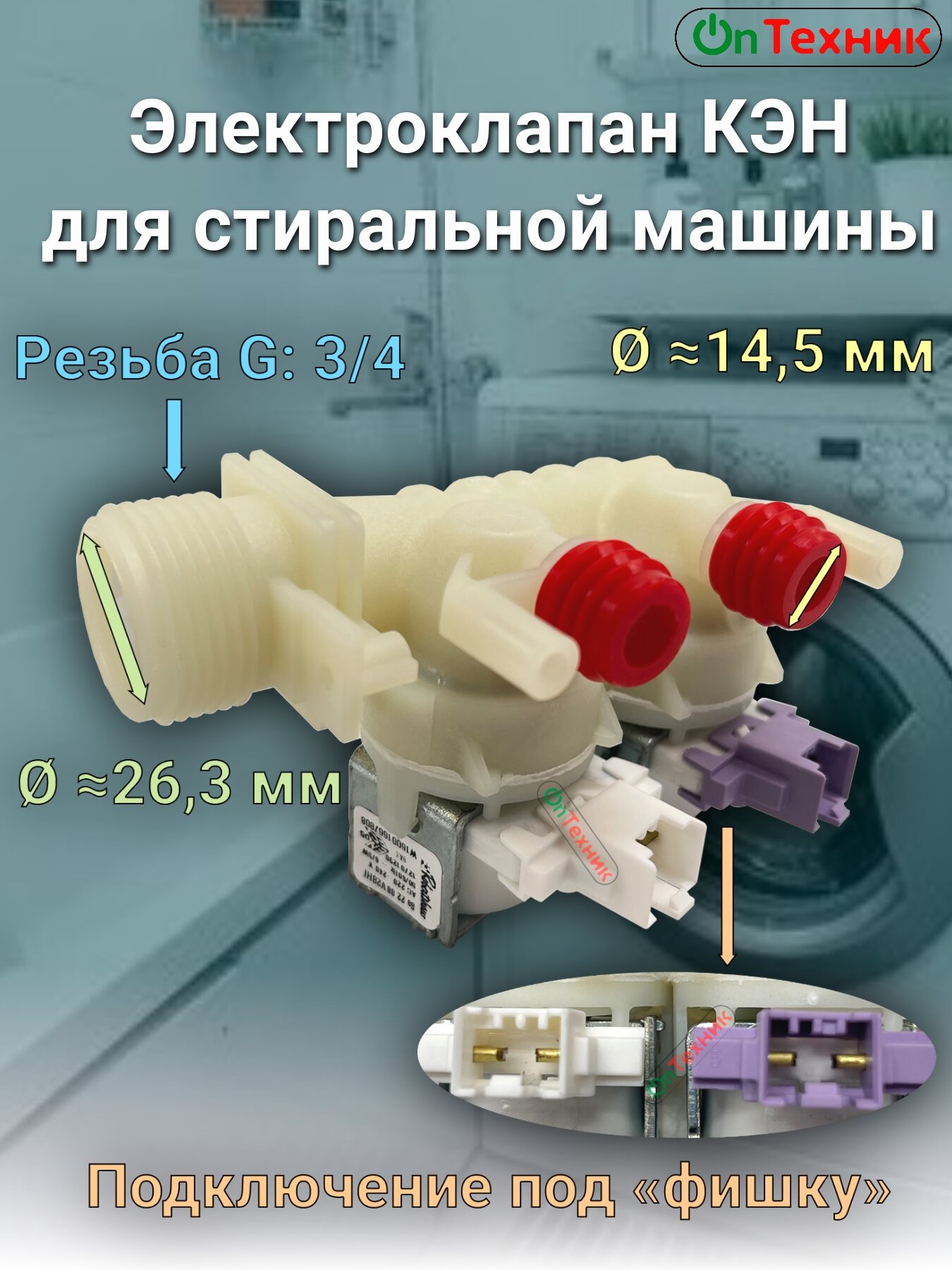 Клапан подачи воды для стиральной машины Whirlpool, Electrolux, Zanussi, AEG, Beko, Daewoo, Indesit, Ariston, Candy, Samsung, Gorenje, LG, 2W x 180 °