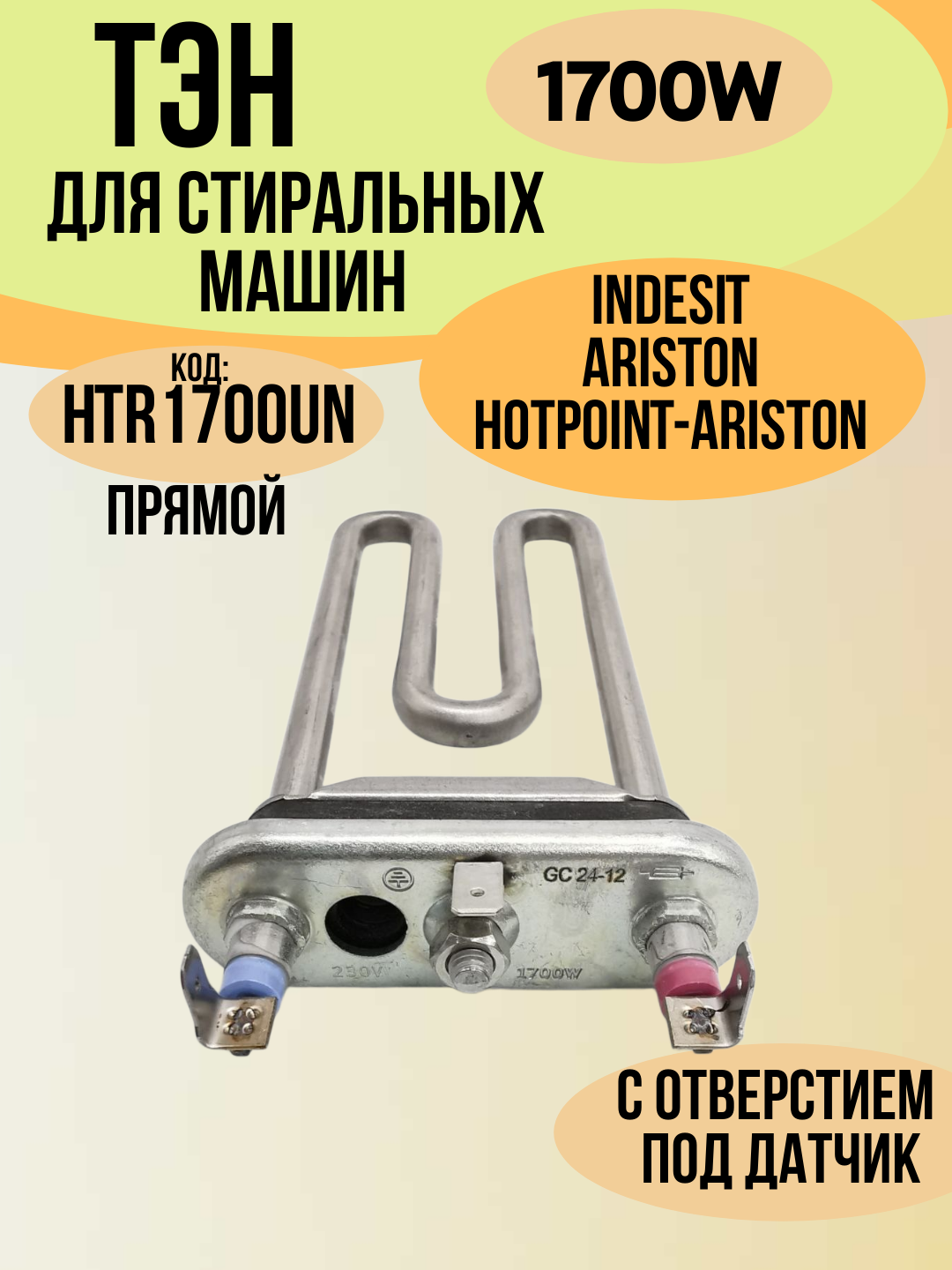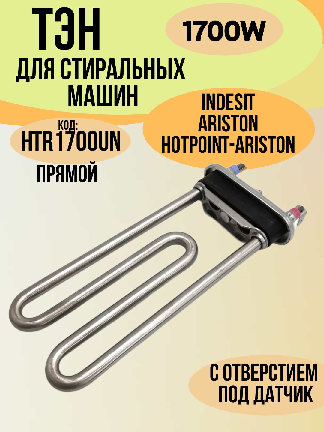 Тэн для стиральных машин Indesit, Ariston, Hotpoint-Ariston 1700W универсальный, прямой, отверстие под датчик, HTR1700UN интересное: