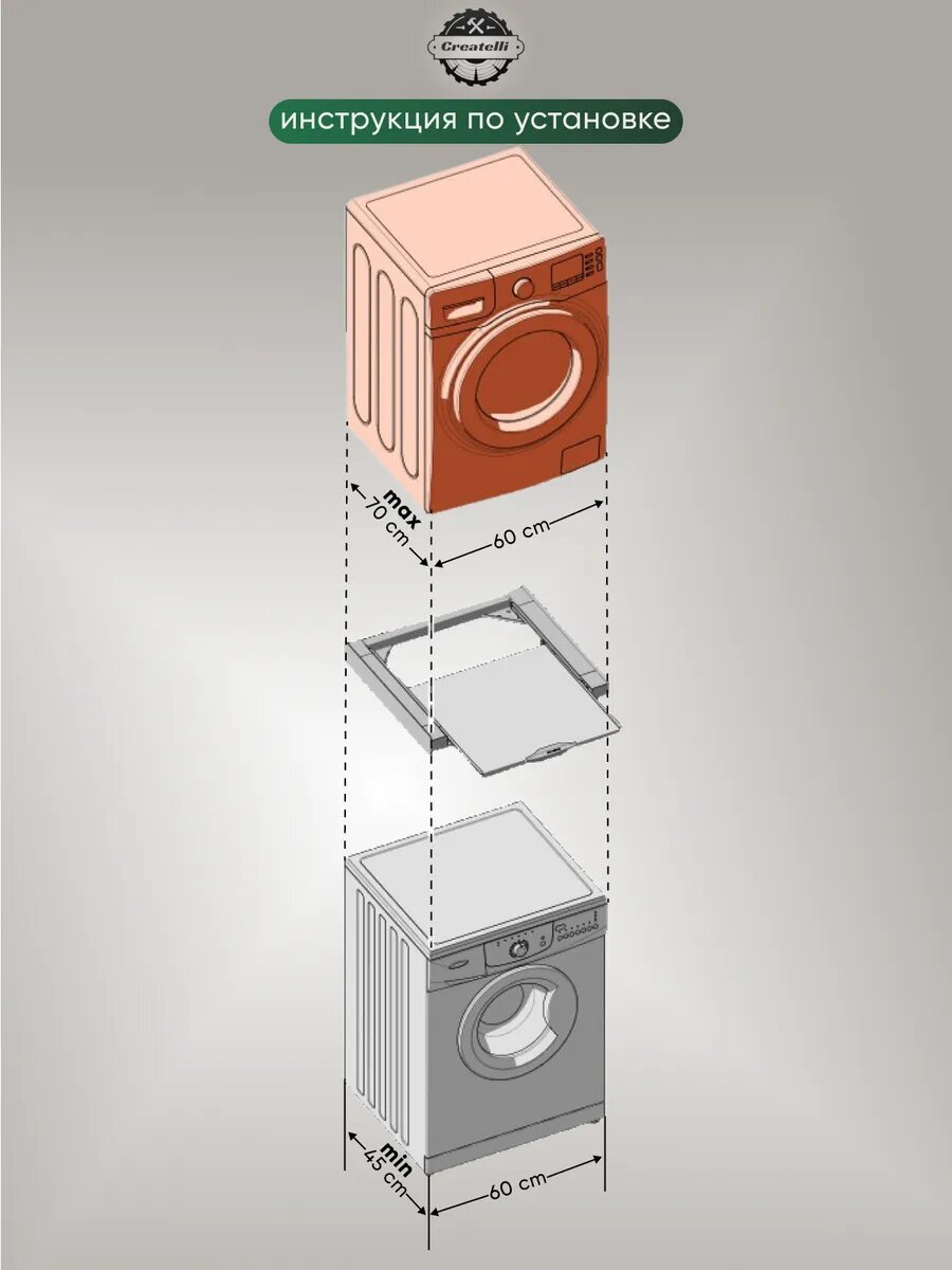 Соединительный универсальный элемент для сушильной/стиральной машины с выдвижной полкой, белый (55*60см) Createlli интересное: