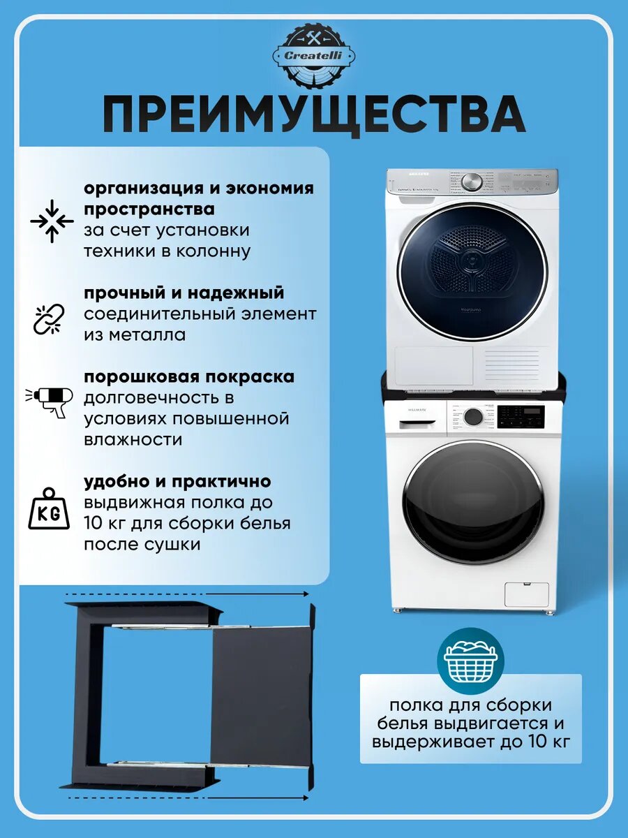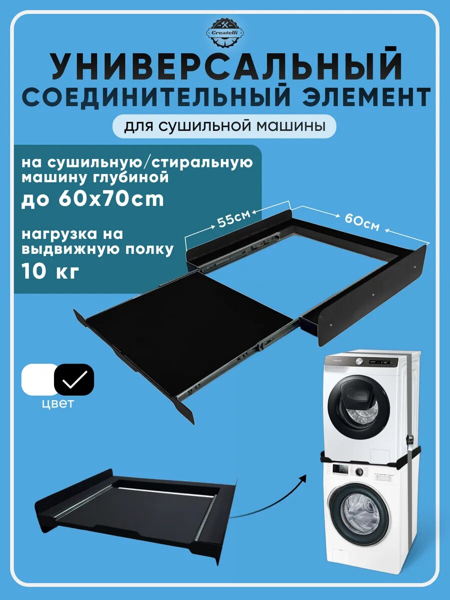 Соединительный универсальный элемент для сушильной/стиральной машины с выдвижной полкой, белый (55*60см) Createlli