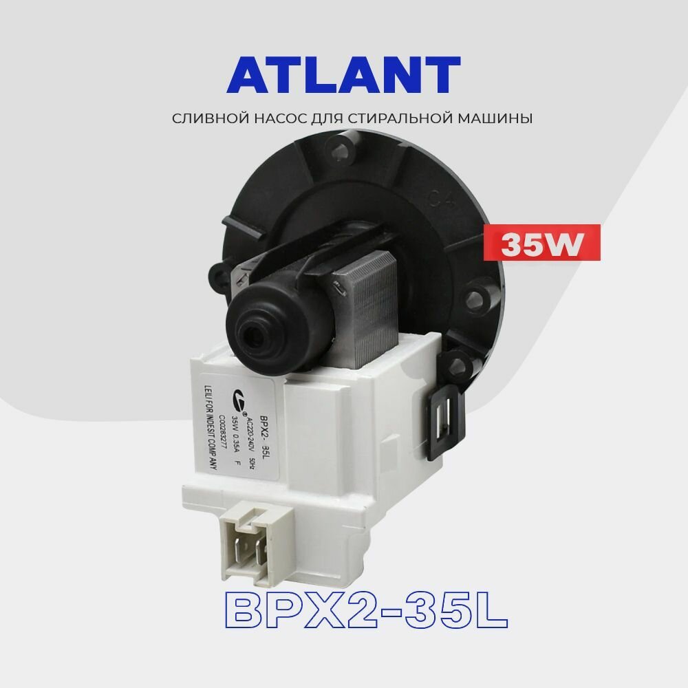 Насос сливной для стиральной машины Atlant Атлант BPX2-35L ( 908092000907 ) в сборе / 35W AC 230V ( контакты фишка )