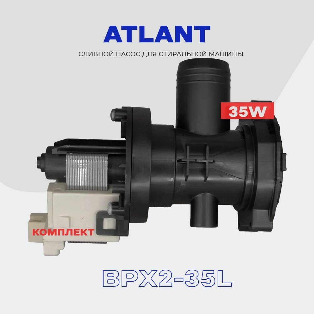 Насос сливной для стиральной машины Atlant Атлант BPX2-35L ( 908092000907 ) в сборе / 35W AC 230V ( контакты фишка ) интересное: