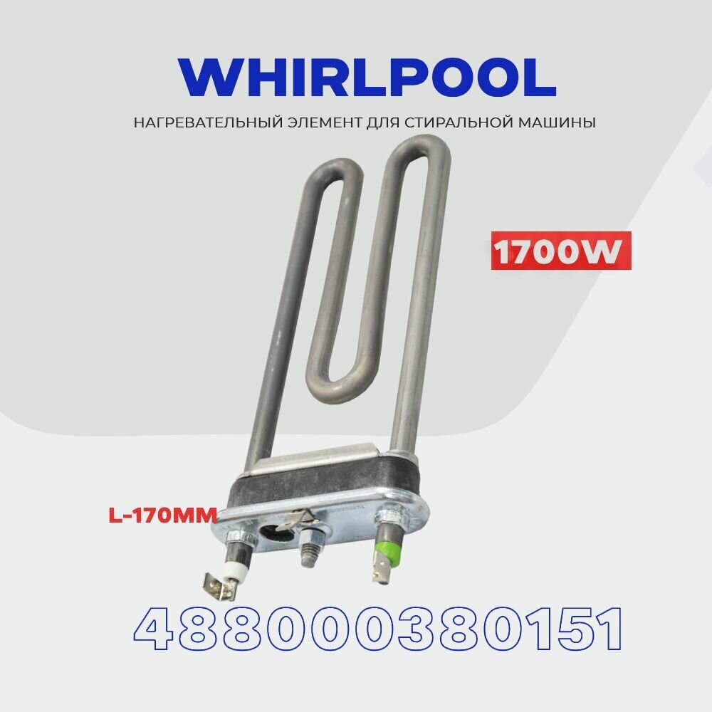 Тэн для стиральной машины Whirlpool 488000380151 1700W AC 220V / Отверстие датчика / L - 170 мм. интересное: