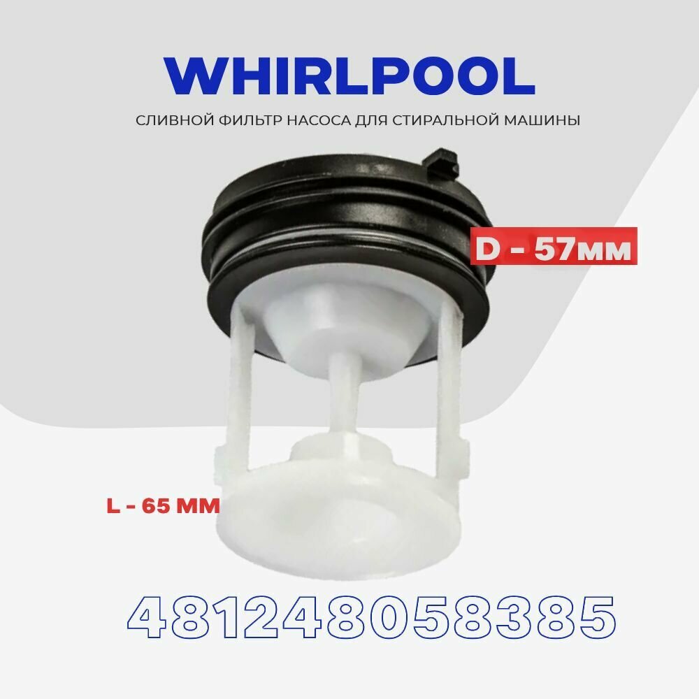Купить Фильтр улитки сливного насоса для стиральной машины Whirlpool 481248058385 / Грязеуловитель