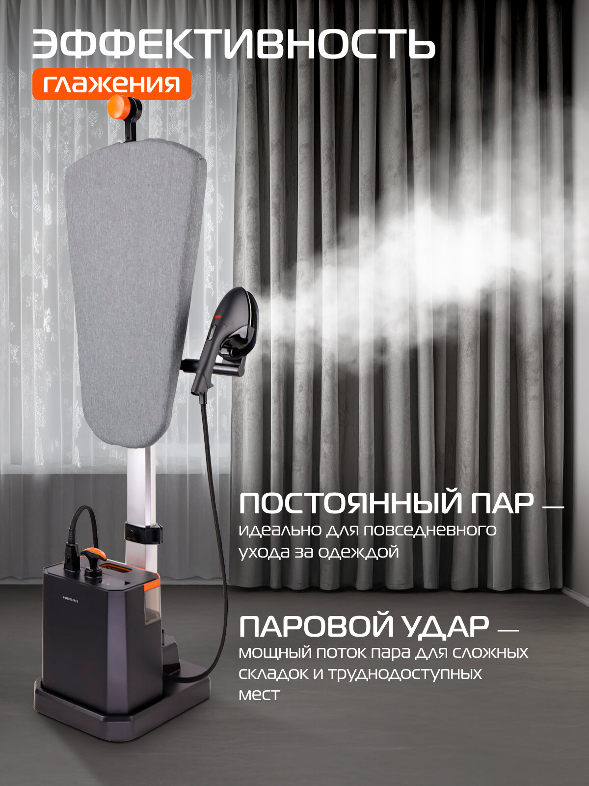 Гладильная система паровая HIBERG GSW 8000 BLACK ORANGE 3 в 1 мощностью 2450 Вт и объемом 2,9 л с 4 регулировками доски интересное: