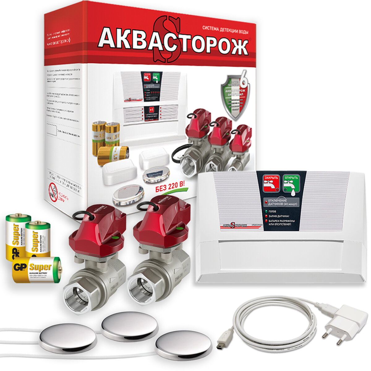 Комплект Аквасторож Классика+ с кранами 1/2" RuB (Bonomi, Италия) - Система защиты от протечек воды (потопа) с проводными датчиками - Набор 22.62 интересное: