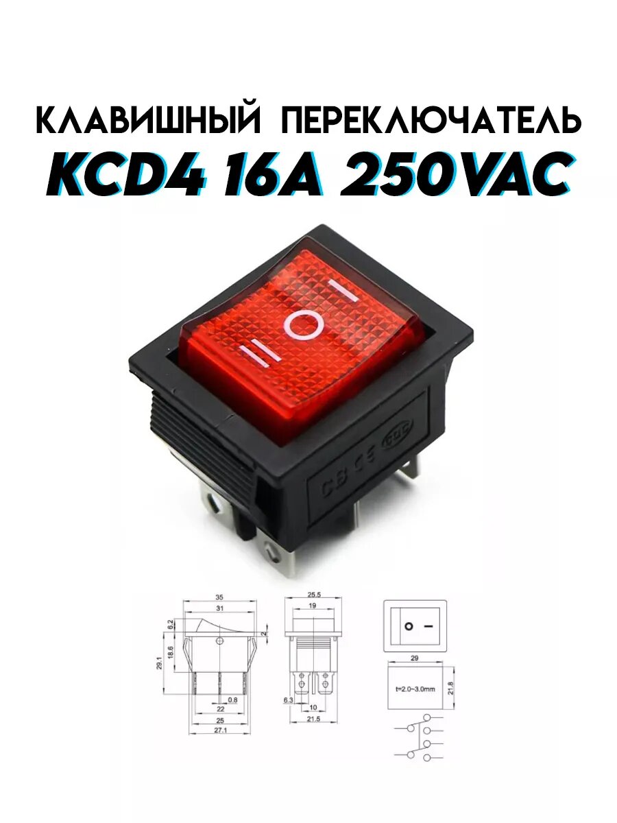 Клавишный переключатель KCD4 16A 6 контактов интересное: