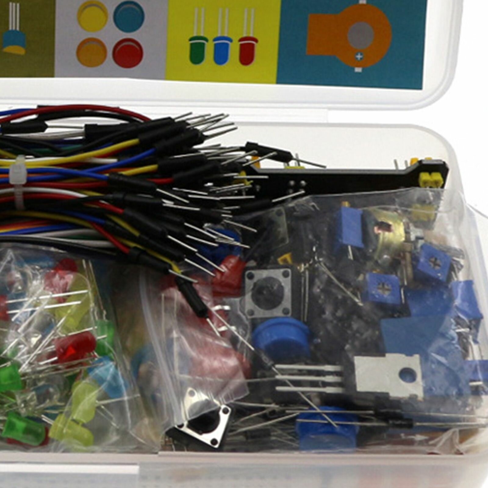 Купить Базовый стартовый комплект с перемычками, макетными резисторами и светодиодным зуммером для UNO R3