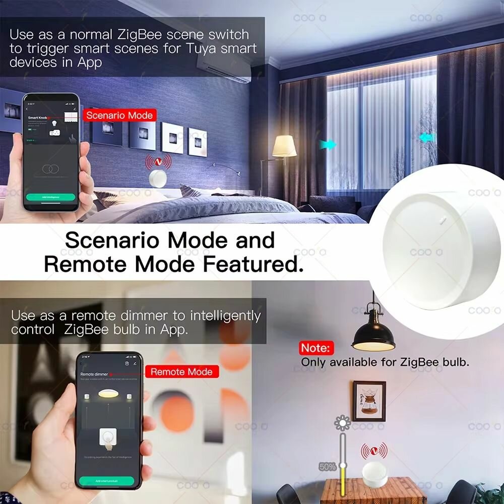 Tuya ZigBee smart knob switch DIY беспроводная кнопка сцены с поворотным диммером интересное: