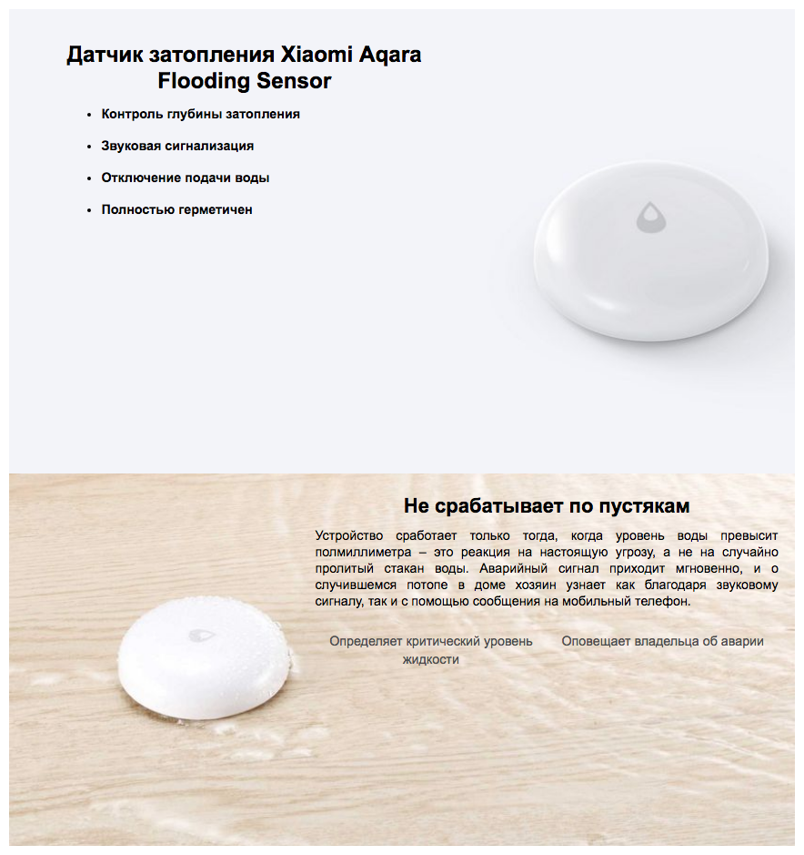 Датчик воды Xiaomi Aqara Flood Sensor SJCGQ11LM, экосистема Aqara, ZigBee, беспроводной, защита IP67 интересное: