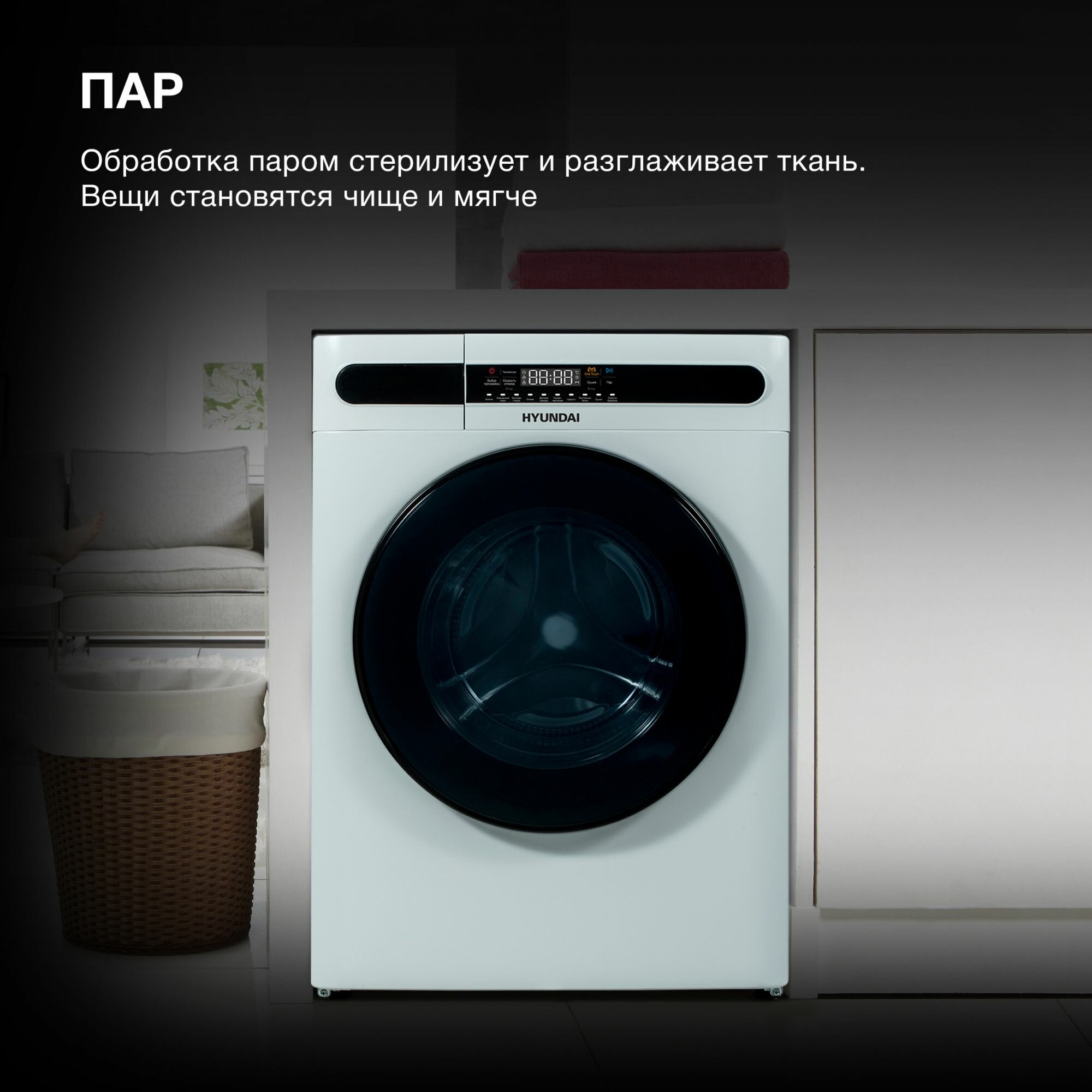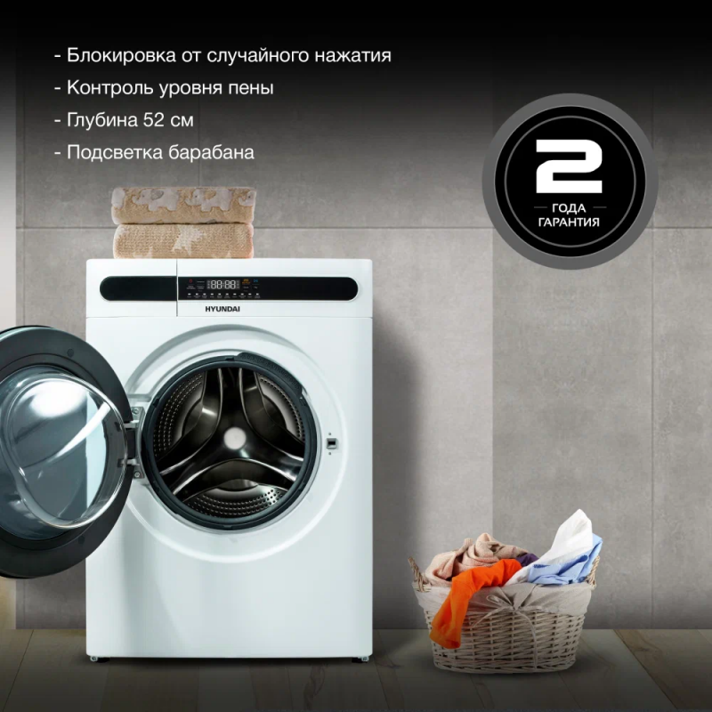 Стиральная машина с сушкой Hyundai WMD8413, белый/черный интересное: