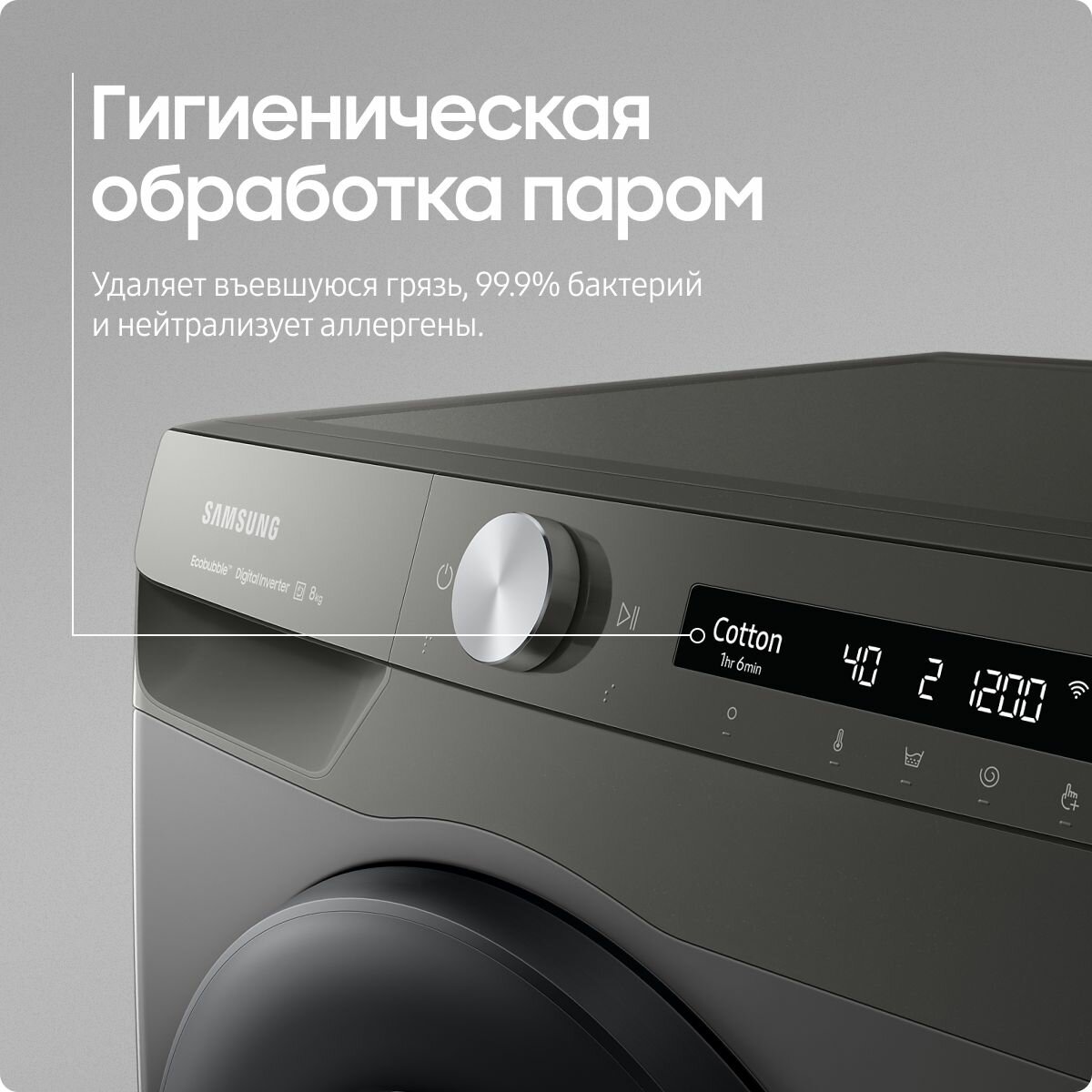 Купить Стиральная машина Samsung WW6300A WW80AG6L28BBLP 8 кг с паром цифровой инверторный мотор функция с ИИ AI Control технология Ecobubble AquaProtect, система Volt Control