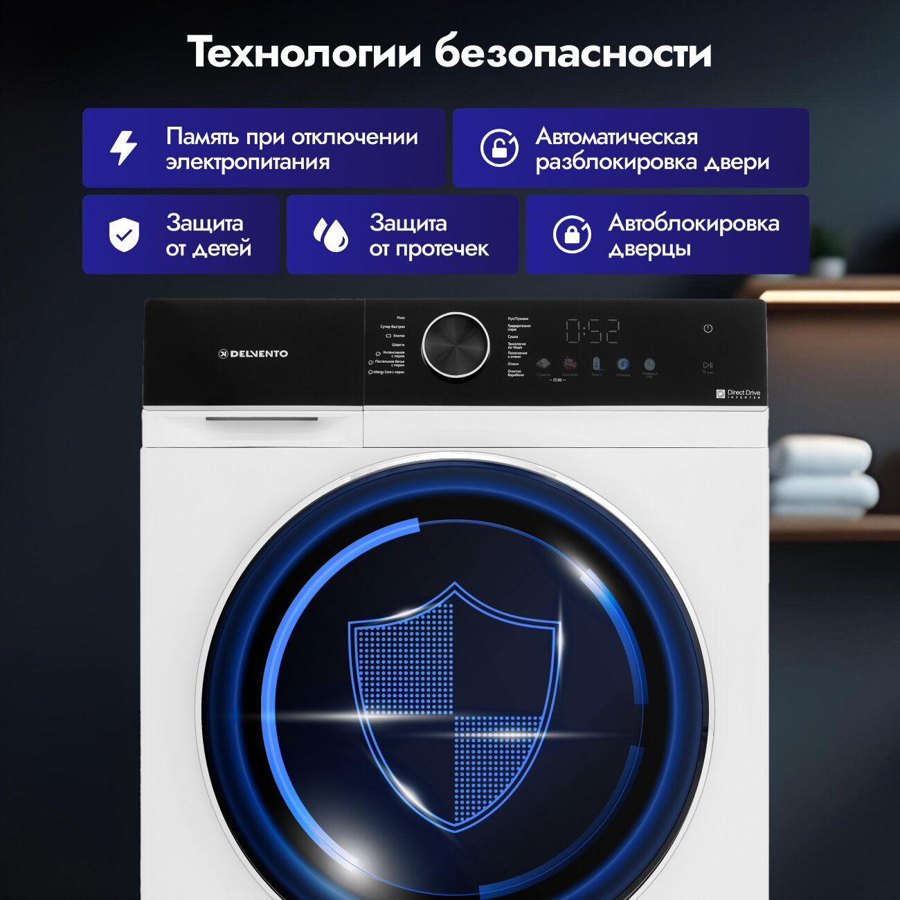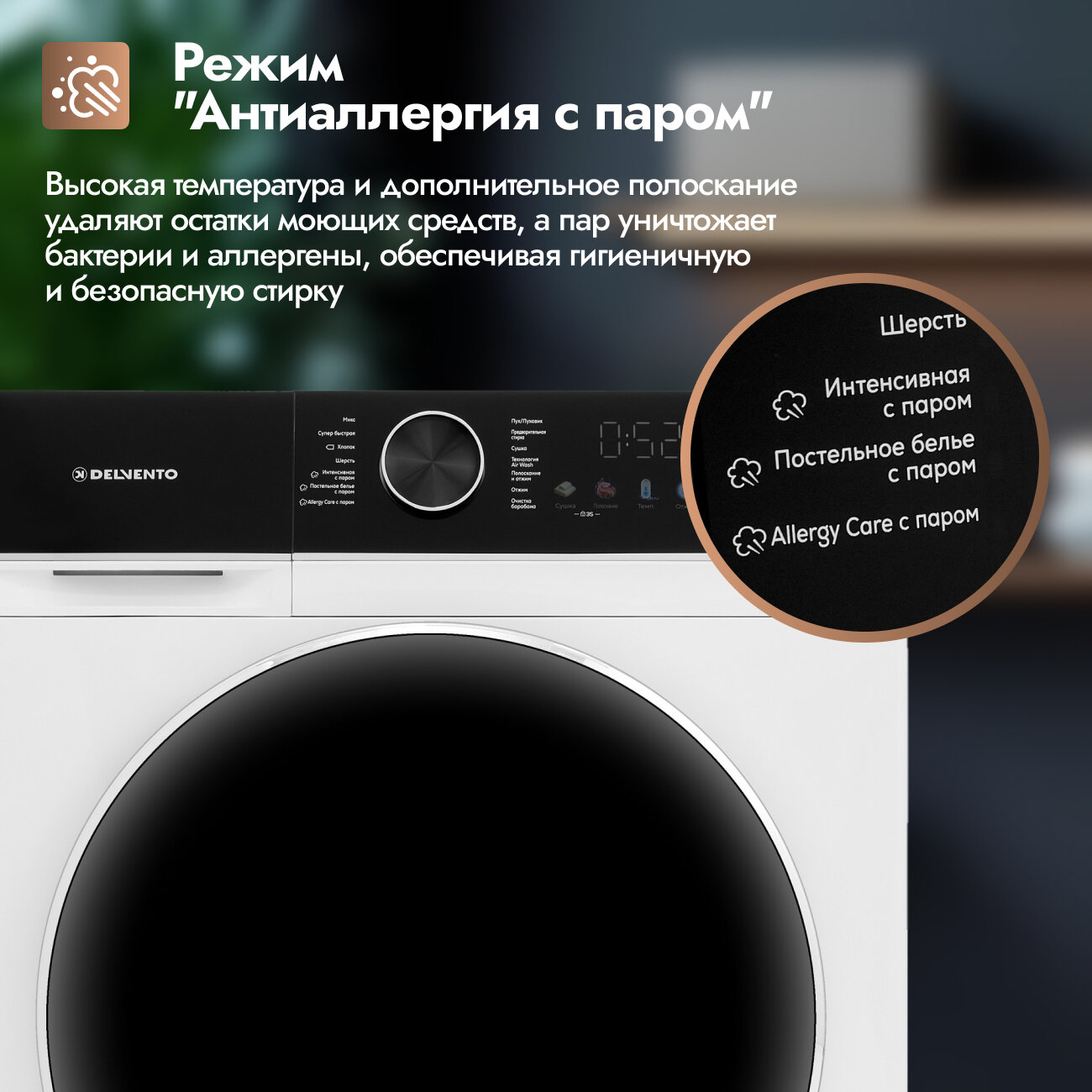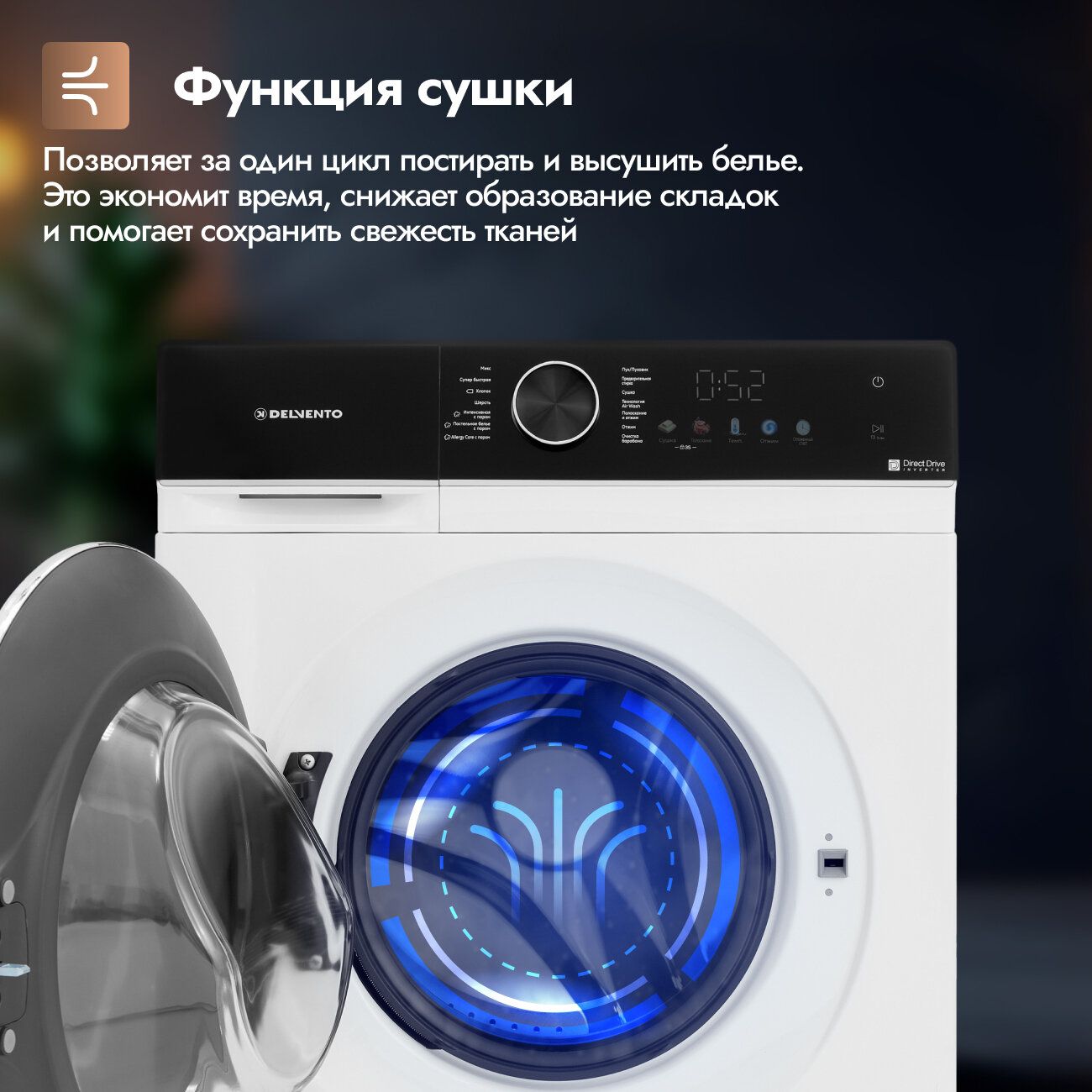 Стиральная машина с сушкой DELVENTO VHS701 / 10,5 кг / сушка 6 кг. / прямой привод / инвертор /1200 об. мин / 14 программ / отложенный старт 24 ч. / гарантия 3 года интересное: