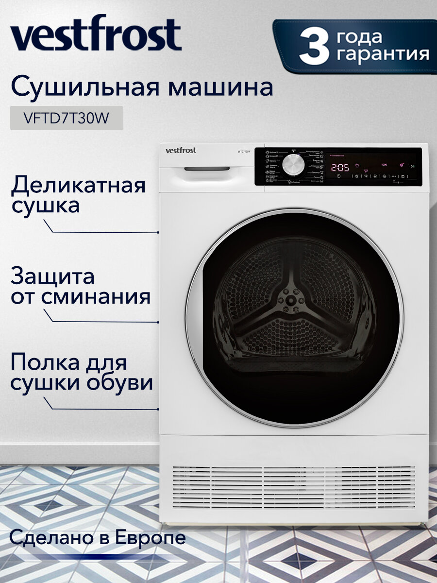 Сушильная машина Vestfrost VFTD7T30W, загрузка 7 кг,15 программ, гарантия 3 года интересное: